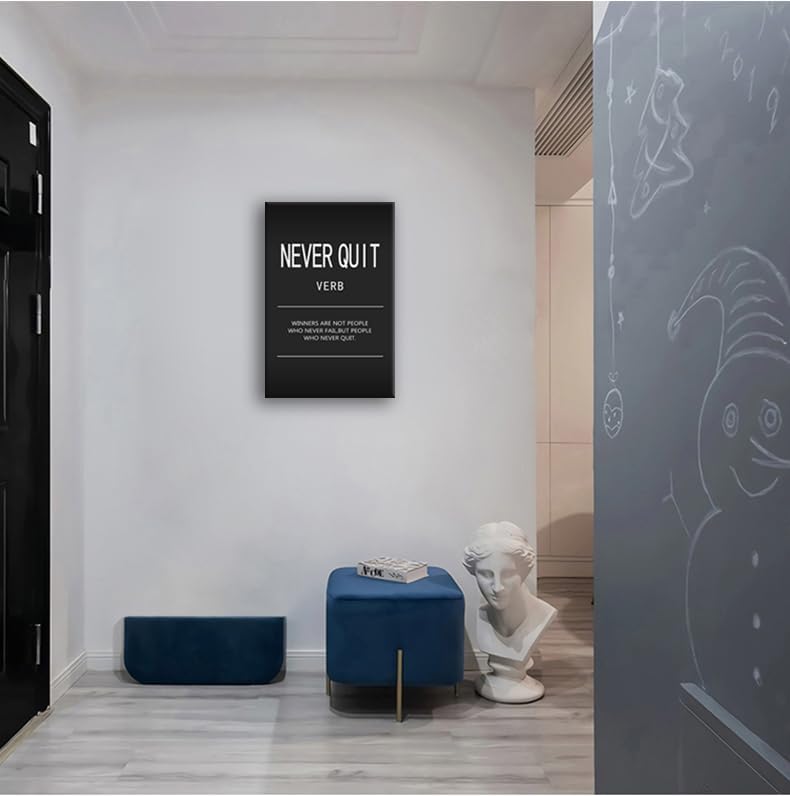Inspirational Wall Art Motivational Quotes Pictures Inspirational Canvas Painting Never Quit Verb Posters Prints Artwork Modern Home Decor for Office Living Room Framed Ready to Hang[24" W x 36" H]