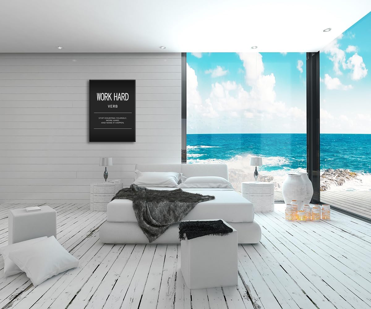 Motivational Wall Art Office Decor Inspirational Quotes Canvas Painting Work Hard Verb Pictures Posters and Prints Artwork Modern Gym Living Room Wall Decor Framed Ready to Hang[30" W X 40" H]
