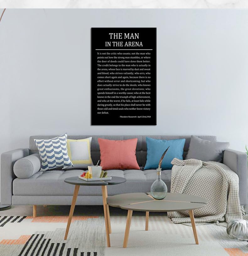 Motivational Poster for Office The Man In The Arena Inspirational Canvas Wall Art Theodore Roosevelt Quotes Prints Artwork for Living Room Home Decor Painting Stretched and Framed [24''Wx 36''H]