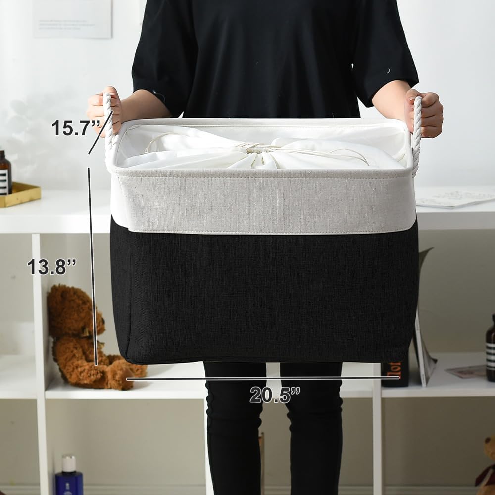 TheWarmHome Organization and Storage for Shelves - Extra Jumbo 3 Pack 20.5x15.7x13.8 inch Fabric Storage Basket for Organizing, Storage Bins for Shoes Towel Blanket (White & Black)