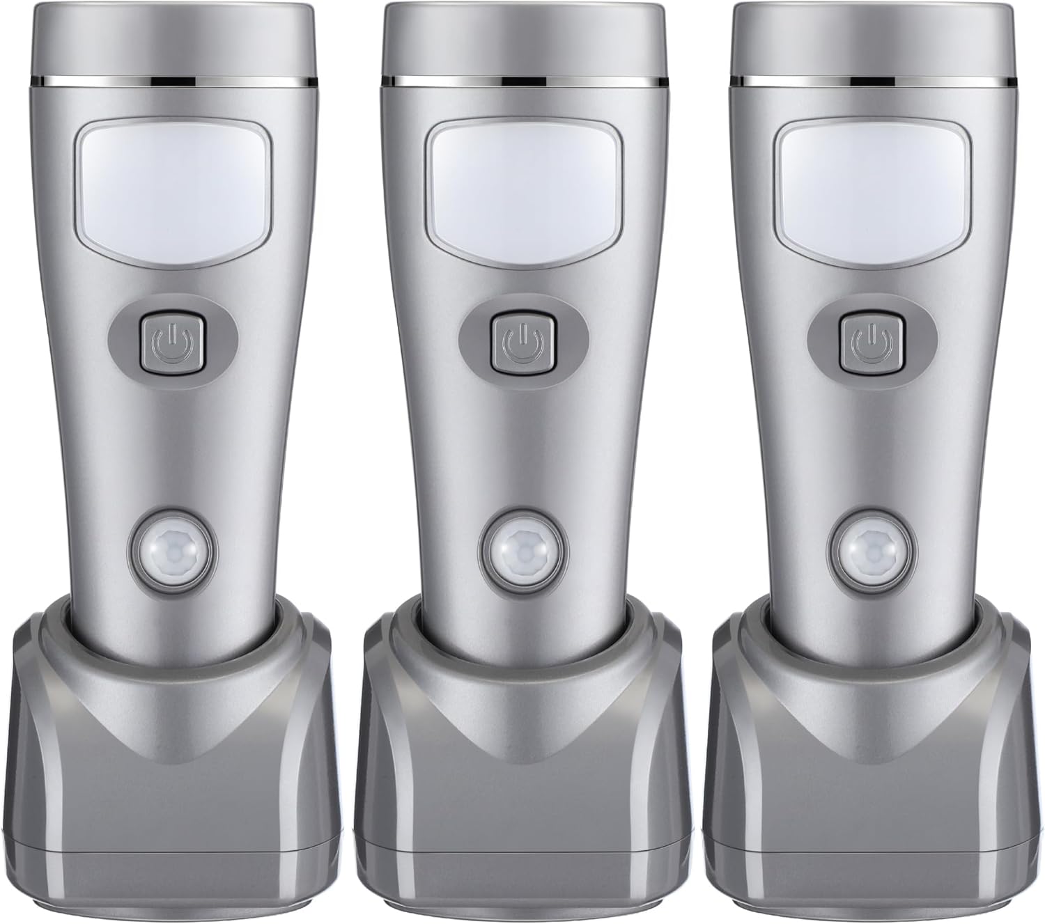 - 4 In 1 Function: rechargeable flashlights are 4 in 1 function; This light can be applied as LED motion sensor nightlight, emergency light, flashlight and rechargeable torch; Plug in the socket and you can use it as a night light; But if you just want to use it as a flashlight, you just need to turn on the button on the top of the light; It is especially handy for use during outdoor camping, nighttime events