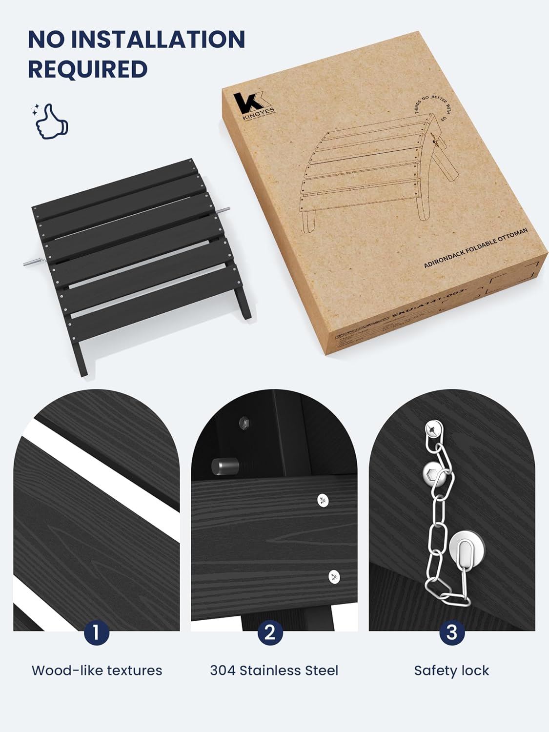- [Instant Comfort]: No assembly required for the KINGYES Adirondack Footstool. Unbox and enjoy immediate relaxation with this portable and convenient footrest, designed for seamless integration into your outdoor living space.