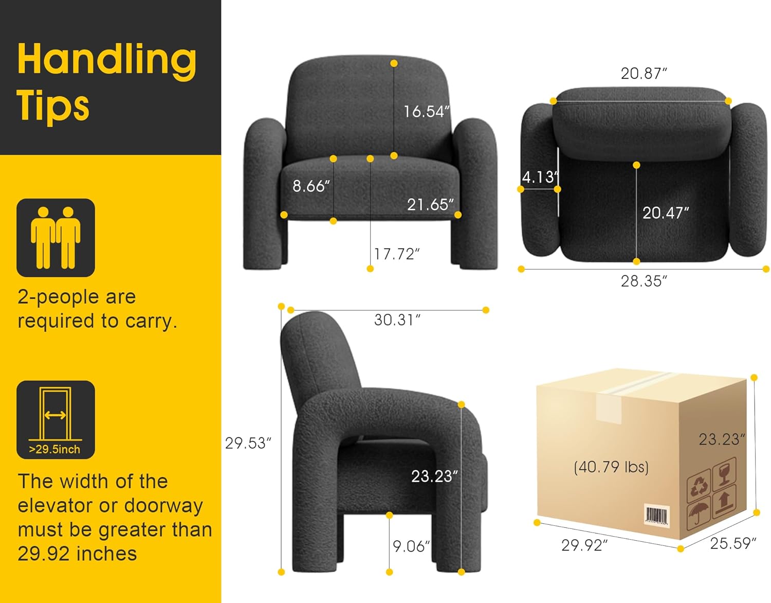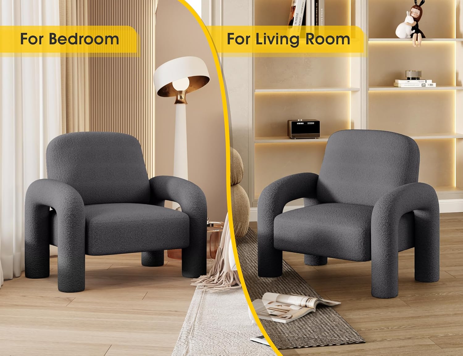 - [Unique & Stylish] This single sofa Modern casual and unique style fits perfectly with minimalist decor and furniture. Add warmth to the whole space, suitable for any living room, bedroom, office or corner and other various scenes. Whether it's a living room sofa chair, bedroom chair, club chair or lounge chair, multiple uses are available.