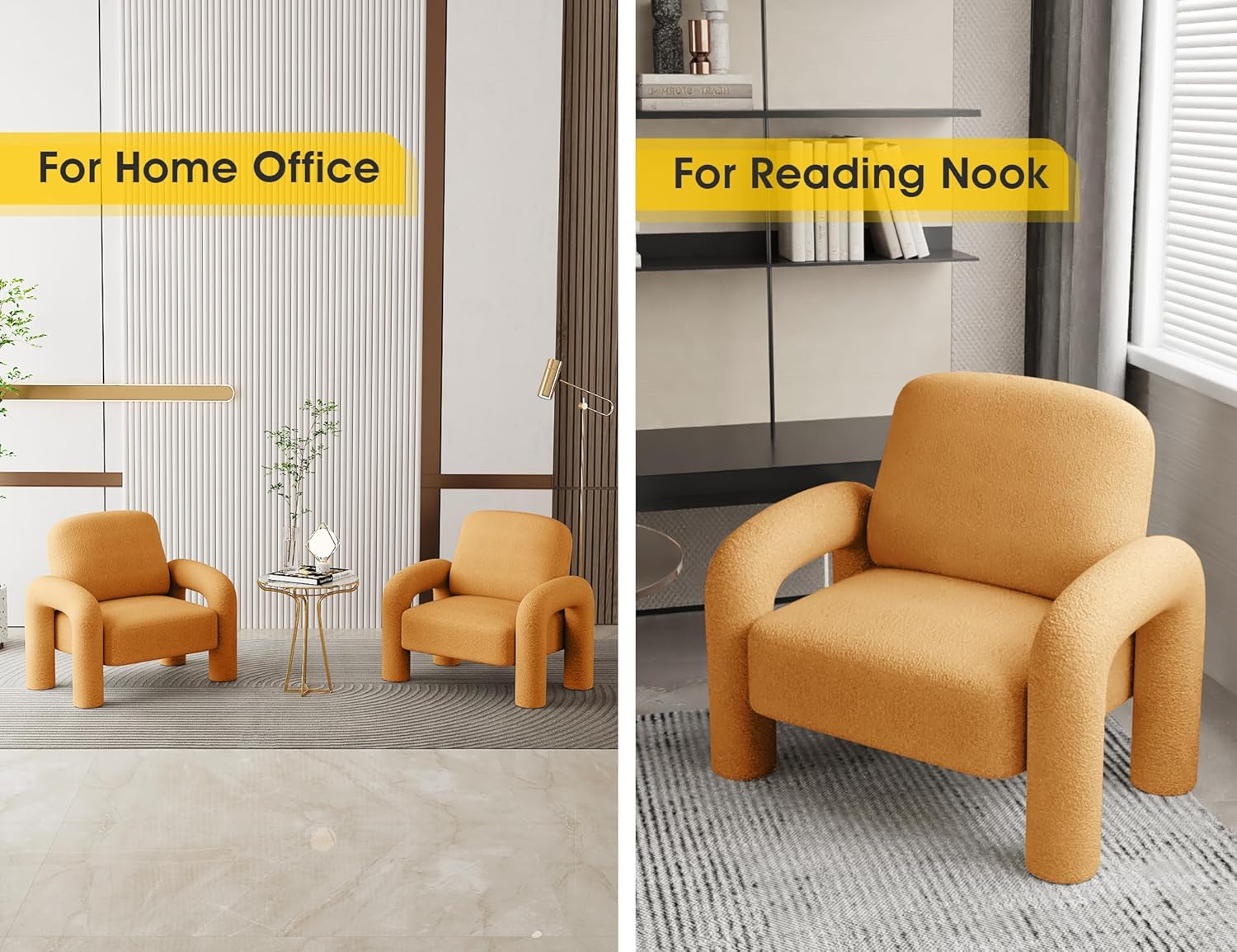 Modern Sherpa Accent Chair, Teddy Upholstered Arm Single Sofa, Cozy Fluffy Reading Chair for Living Room, Bedrooms, Corner (Yellow)