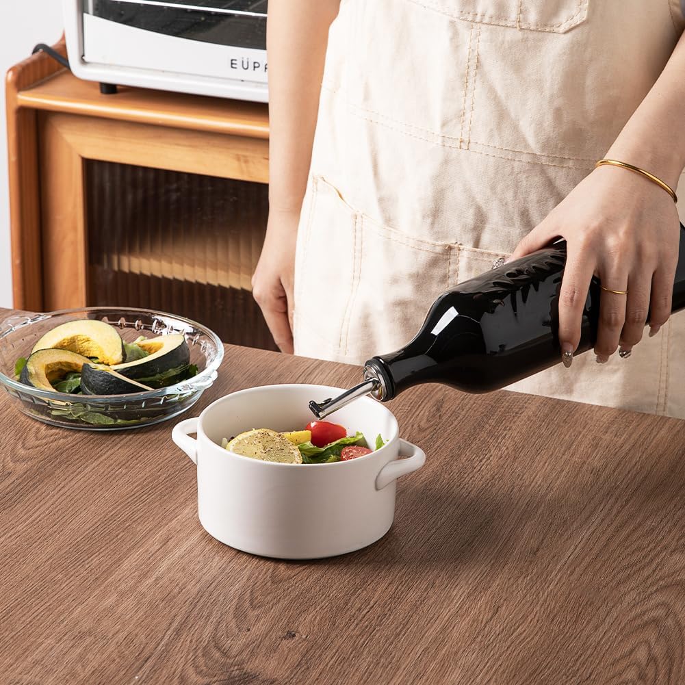 - Durable and Precise Pouring Control - The olive oil bottle fired at high temperatures, to form a smooth glazed surface, strength and durability. The carefully designed spout that allows for easy pouring without any messy drips or spills.
