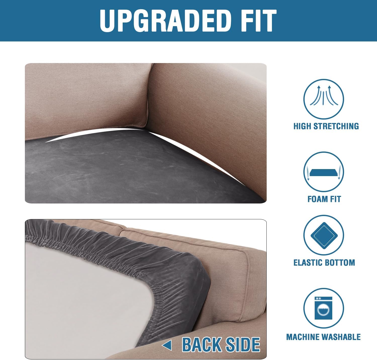 - STAY IN PLACE: Featuring non-skid thick elastic bottom, our cushion slipcover can stay tight with no snag, no wrinkling, shifting or slipping on both leather and cloth sofa.
