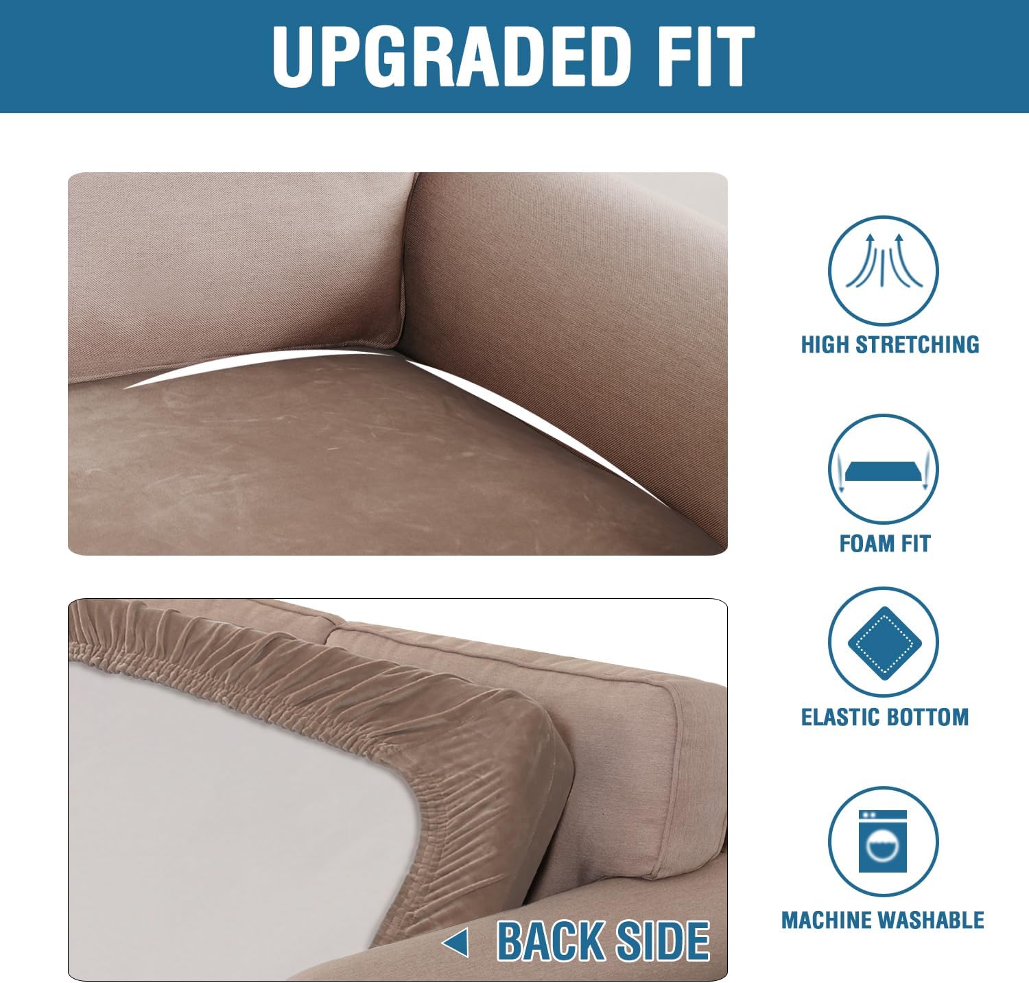 - INCREDIBLY COMFORTABLE VELVET: Products passed GLOBAL RECYCLED STANDARD certificate.1 piece included. Crafted from luxurious velvet plush fabric, feature thick, soft, smooth, anti-wrinkle, no fading, durable as well as highly stretch. Protect your cushion furniture from daily wears and tears, stains, kids, scratches from pet claws, dogs or accidental spills