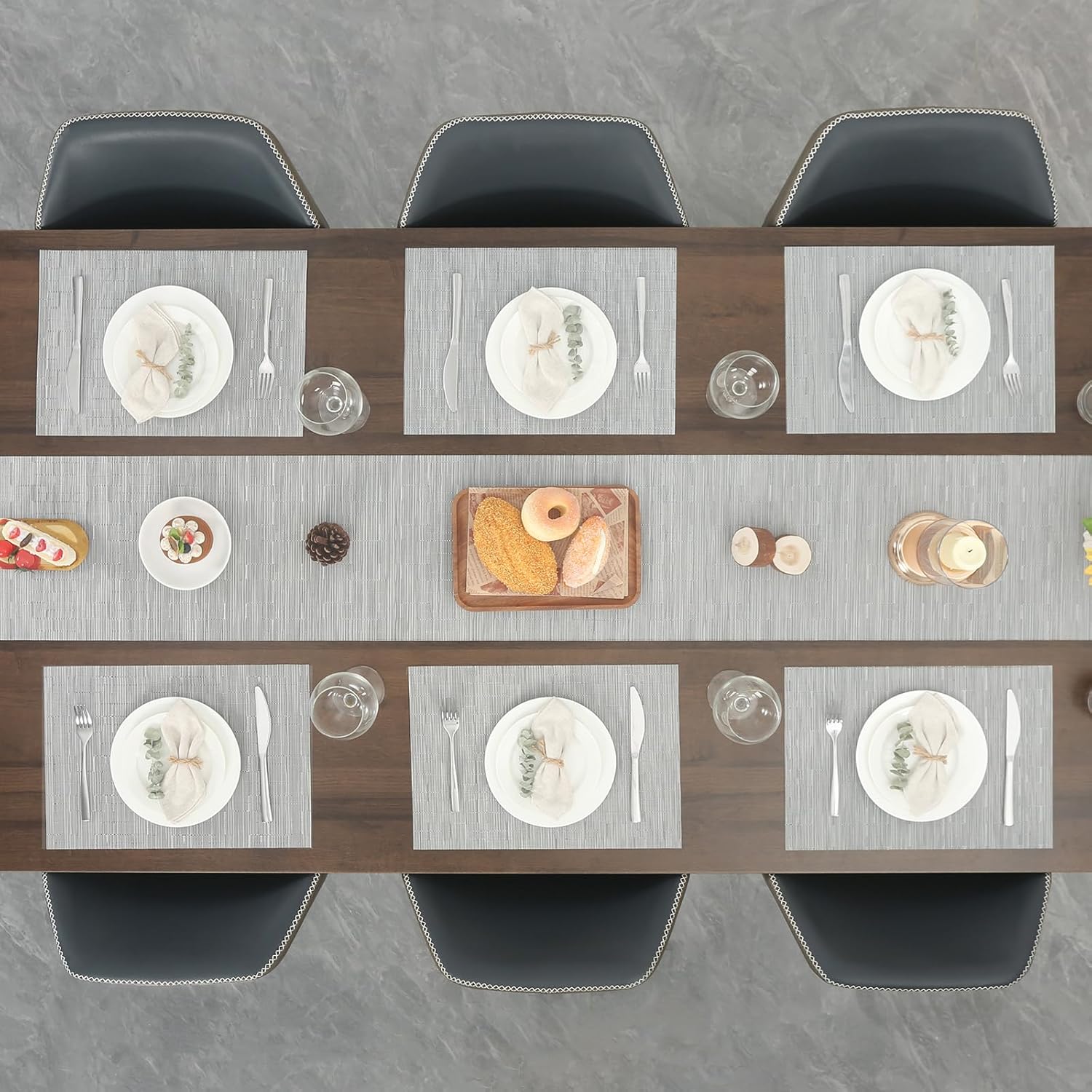 Myir JUN Placemats Set of 4, Vinyl Woven Placemats Place Mats Indoor Set of 4 Washable Table Mats Non-Slip Place mats for Dining Table (Silver, Set of 4)
