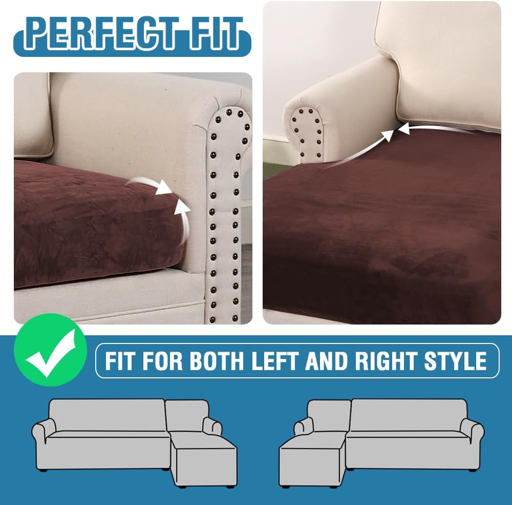 H.VERSAILTEX Velvet Stretch Sectional Couch Covers - 4 Piece L Shape Sofa Seat Cushion Set for 3 Seater + 1 Chaise (Brown)