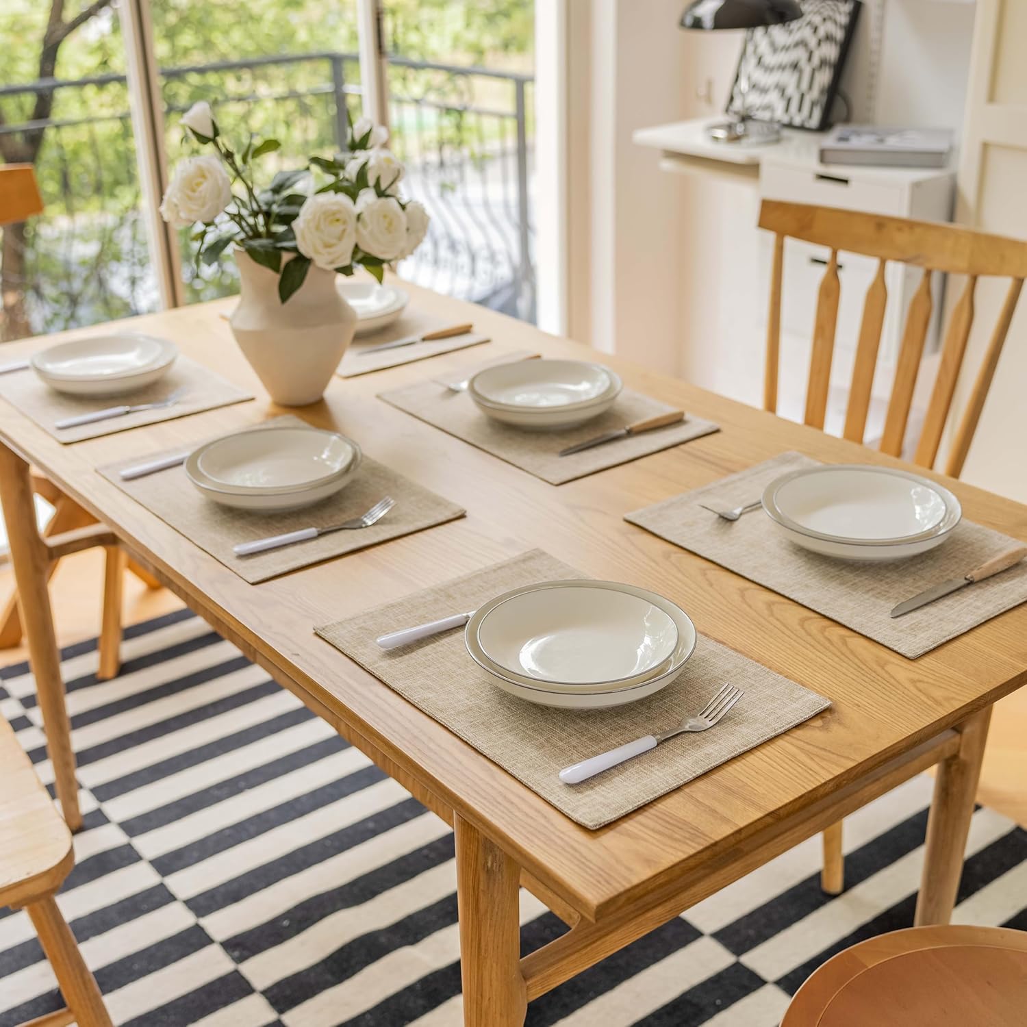 Demetex Burlap Placemats Set of 4 Heat Resistant Decorative Cloth Place Mats Wipeable Lined Linen Table Plate Mats for Party Dinner Gathering, Burlap