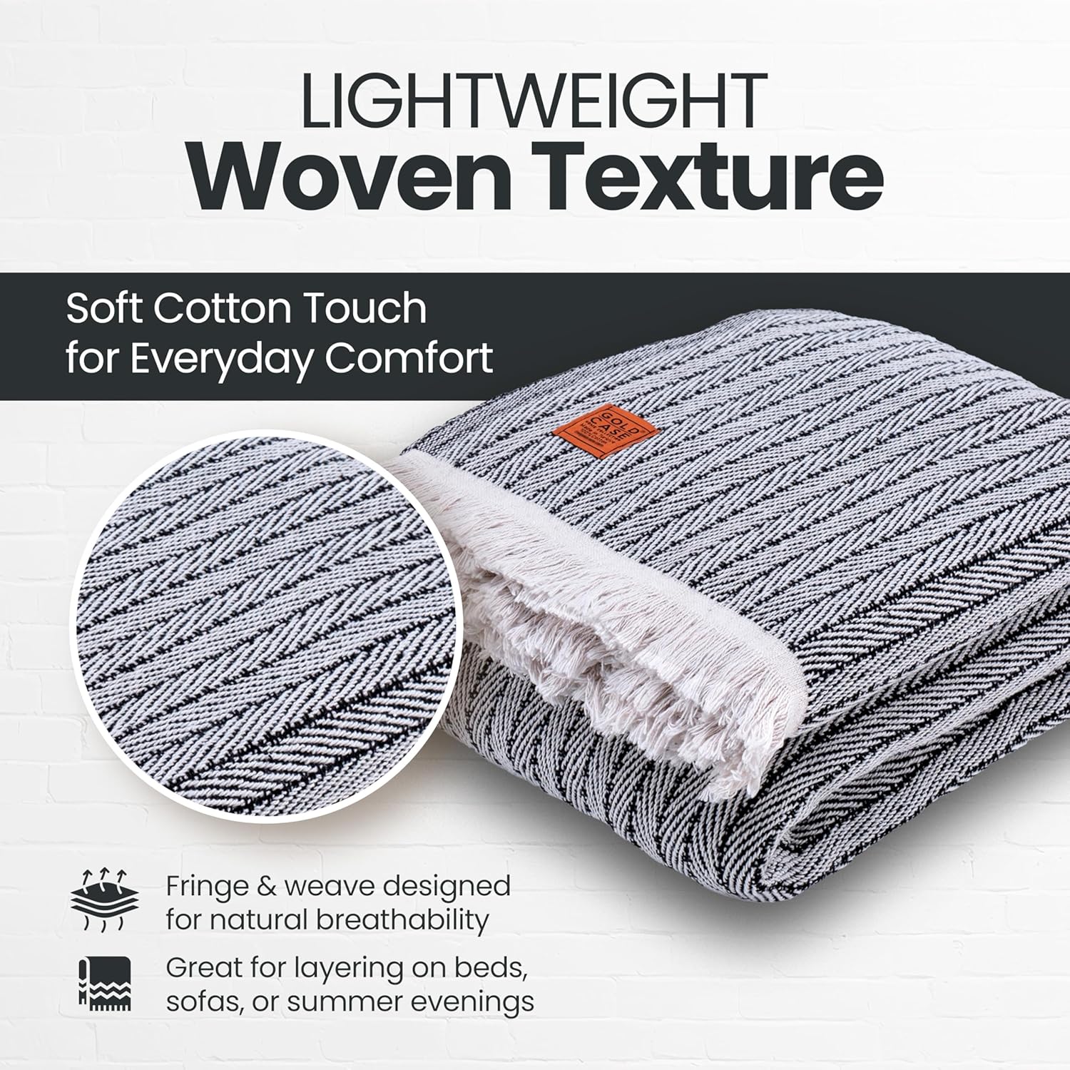 - LIGHTWEIGHT LAYERS FOR RELAXED MOMENTS: Woven from 100% recycled Turkish cotton, this breathable cotton blanket throw adds a soft, textured touch to your space; this bed throw blanket made for layering on your bed, or adding a laid-back look to your decor