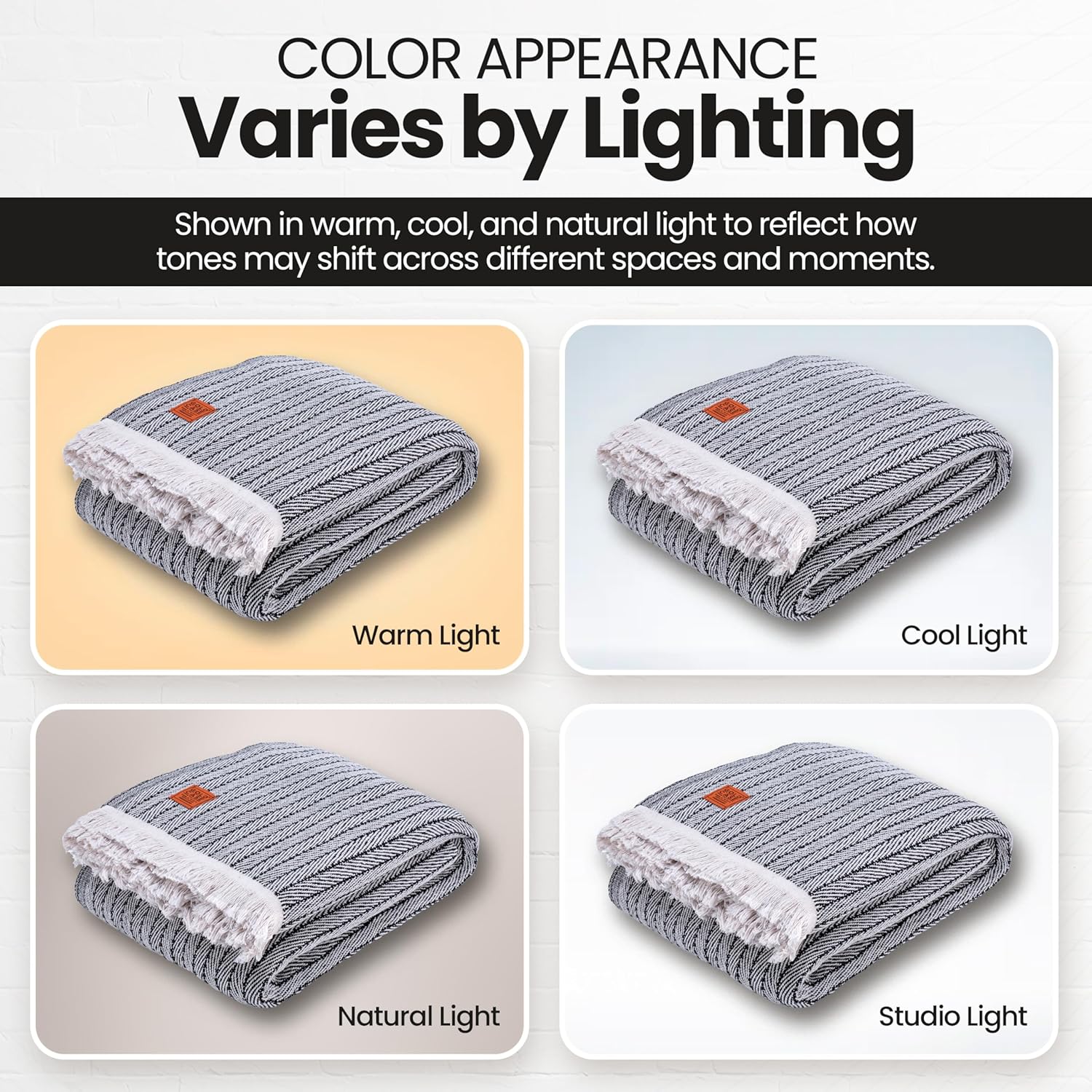 - CELEBRATE SUSTAINABLE STYLE: Made in Turkiye with recycled cotton, this cotton throw blanket brings eco-conscious comfort to your home; the soft weave and fringe detail give this woven blanket for bed a rustic, decorative touch that layers beautifully in any space