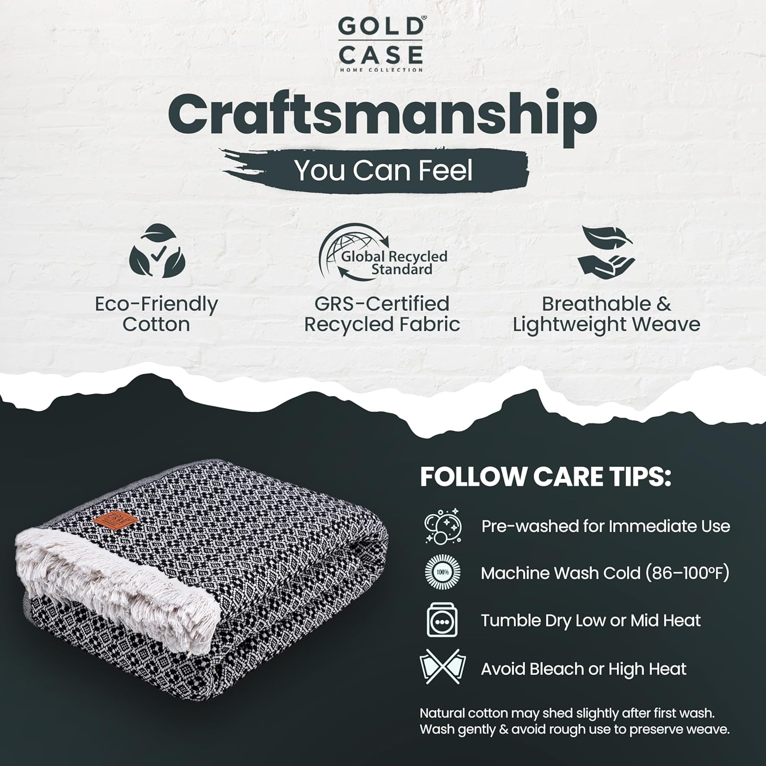 - CRAFTSMANSHIP BEYOND COMPARE: Thoughtfully woven from recycled cotton, this woven throw blanket is GRS-certified for sustainability; each breathable blanket is responsibly crafted with a breathable weave and finished edges that help minimize fraying
