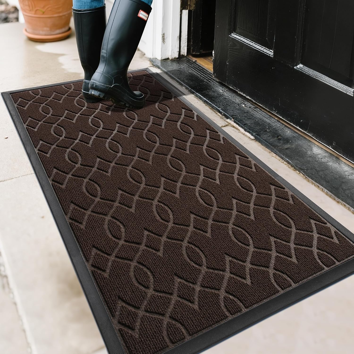 Yimobra Front Door Mat Outdoor Indoor 47x24, All-Season, All-Weather, Heavy Duty Welcome Door Mats Outside Entrance, Non Slip Porch Patio Entrance Mat, Coffee