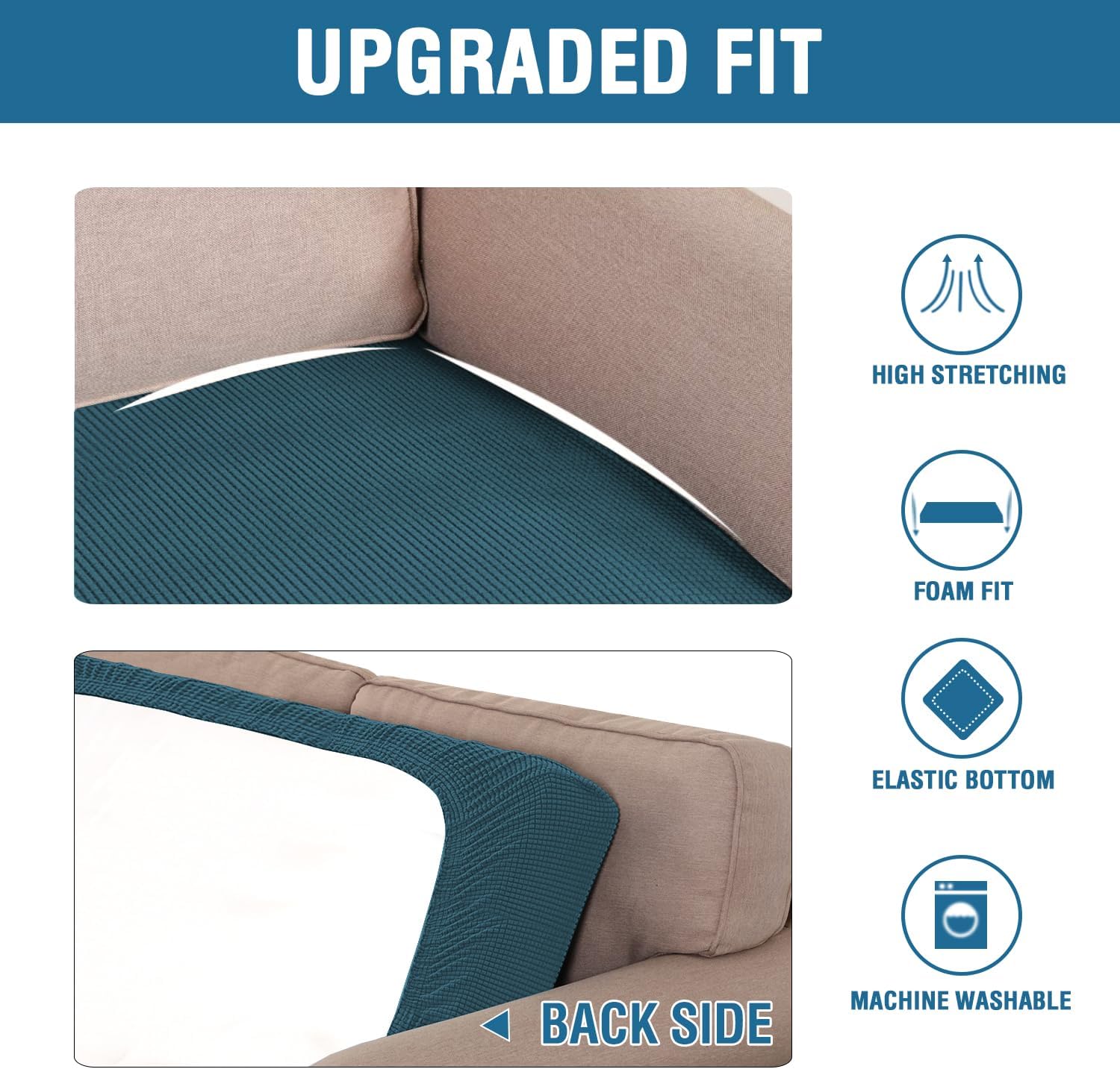- NON SLIP: Effortless for installation (guide photos on selling page), sewn with thick elastic loops to cover the bottom edges. It is easy to install and take off, making your home more harmony, high recommended for both leather and cloth furniture