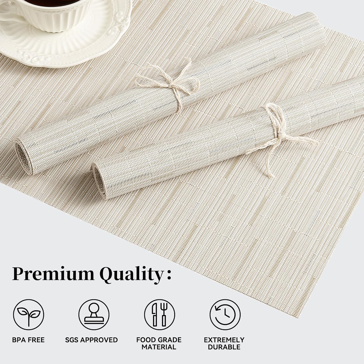 Leetaltree Pale Beige Placemats Set of 12 - Heat Resistant Non-Slip Place mats for Dining Table, Washable Durable PVC Vinyl Woven Table Mats(Pale Beige, 12)
