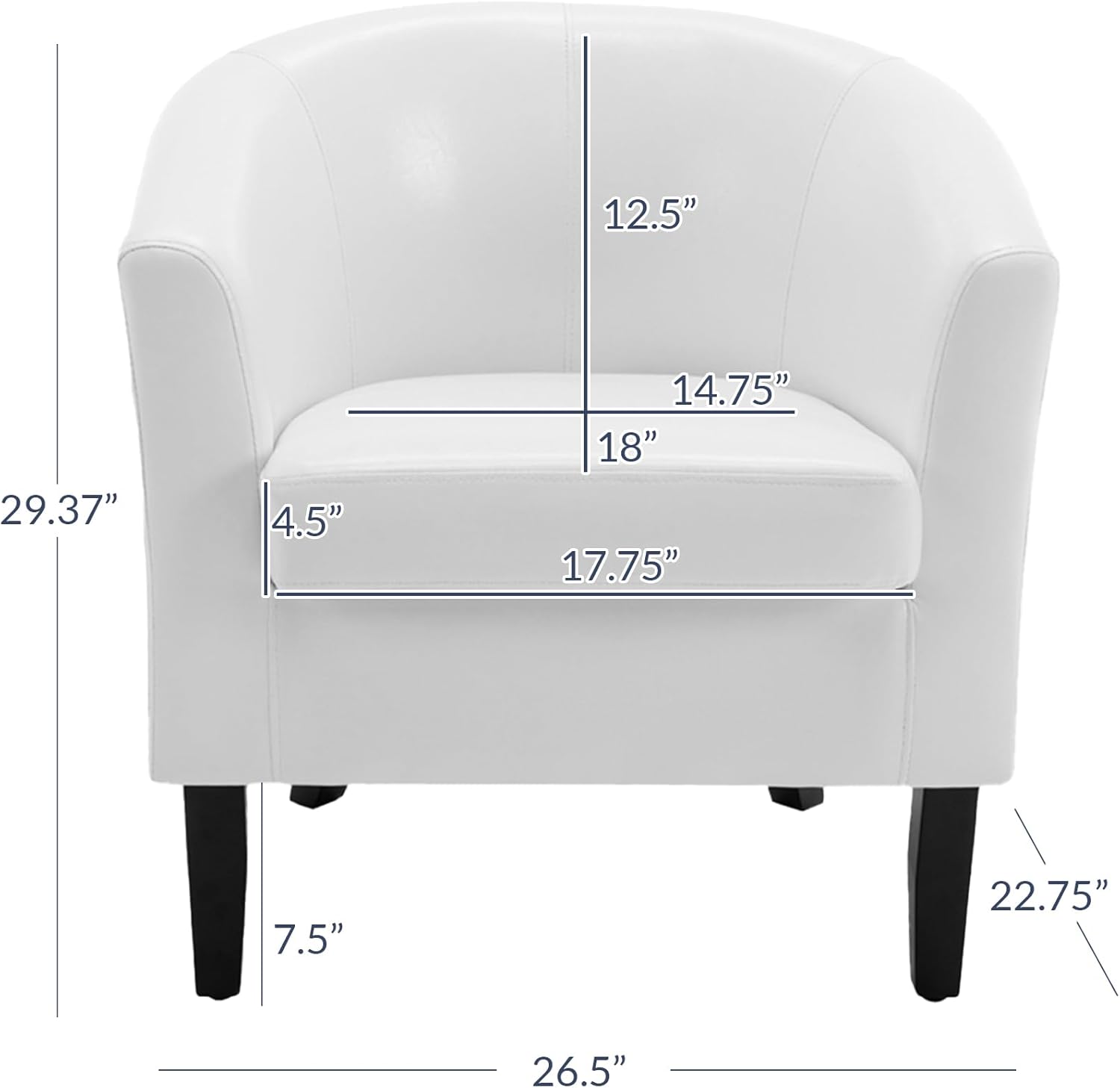 - [VERSTAILE SITTING CHAIR] A stylish addition to your living room, bedroom, guest room, or in hotels and cafes. Once fully-assembled, the overall dimensions are 22.75"D x 26.5"W x 29.37"H and this club chair can support up to 300 pounds.