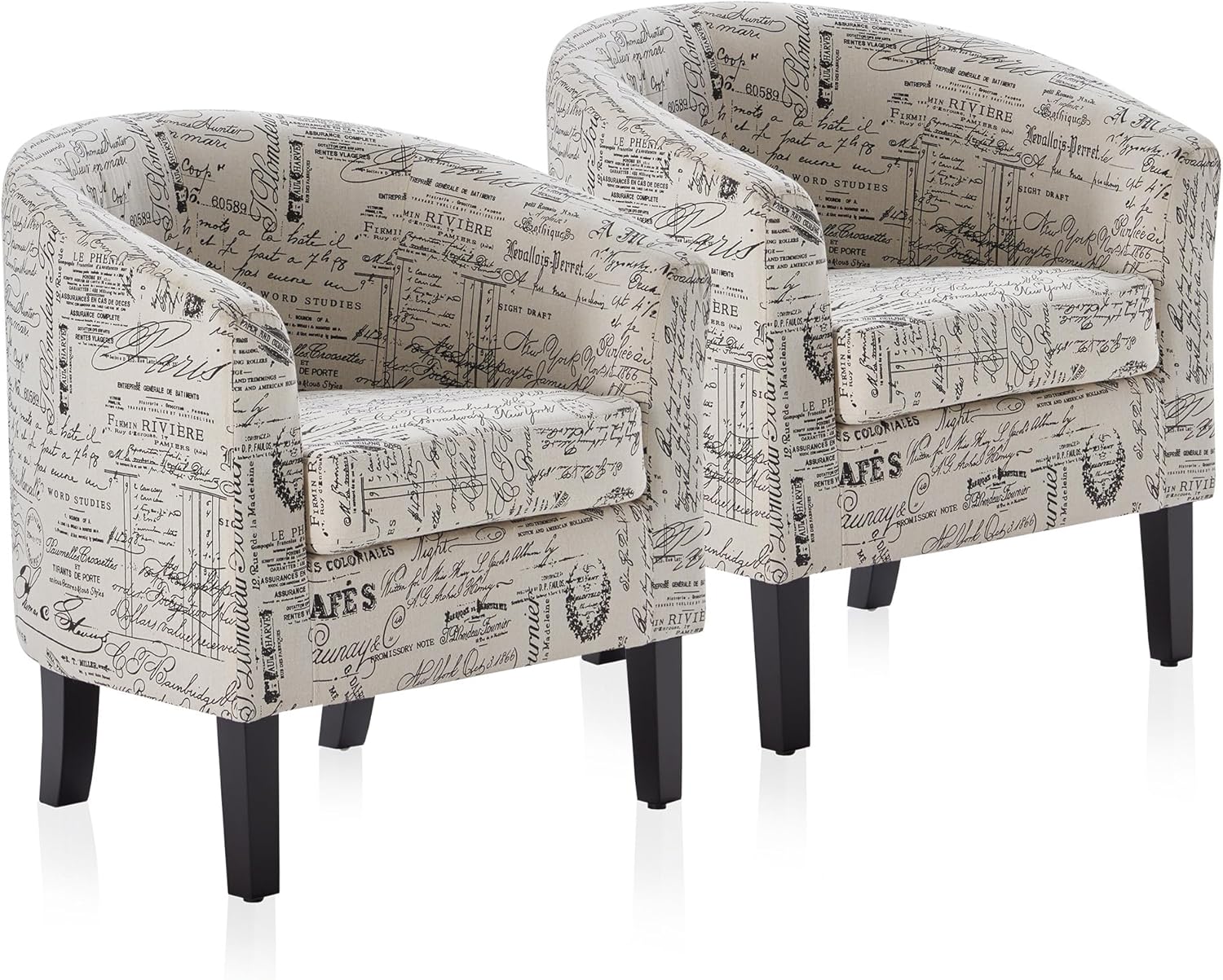 BELLEZE Accent Barrel Chair Set of 2, Linen Round Chair Club Tub Sofa Corner Chair with Flared Legs and Cozy Soft Padding for Living Room Bedroom Waiting Room - Black & Beige