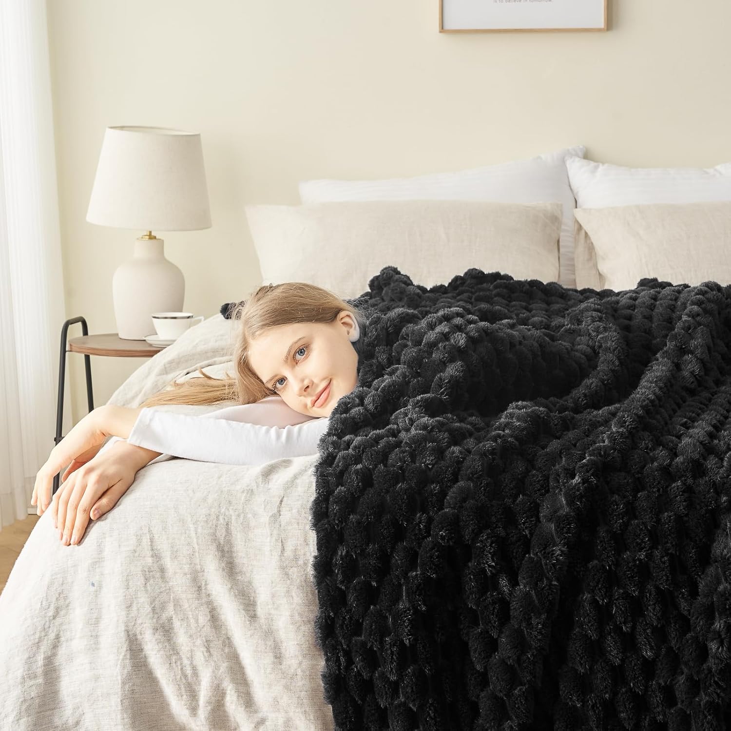 NEWCOSPLAY Super Soft Throw Blanket Black Premium Silky Flannel Fleece 3D Clouds Stylish Jacquard Lightweight Bed Blanket All Season Use 350GSM (Black, Throw(50"x60"))