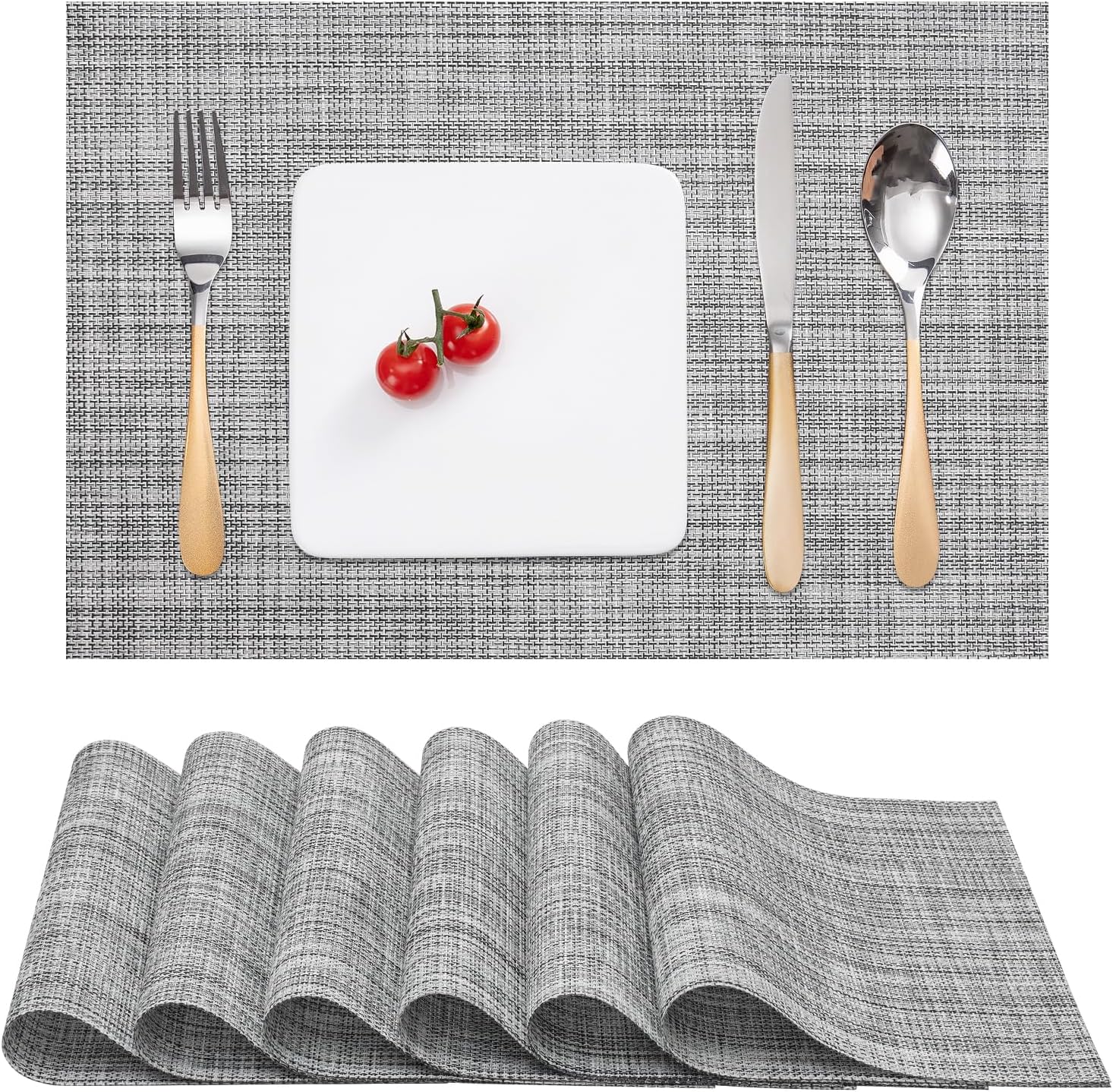 Myir JUN Placemats Set of 6, Vinyl Woven Placemats Place Mats Indoor Washable Table Mats Non-Slip Place mats for Dining Table (Light Gray, Set of 6)