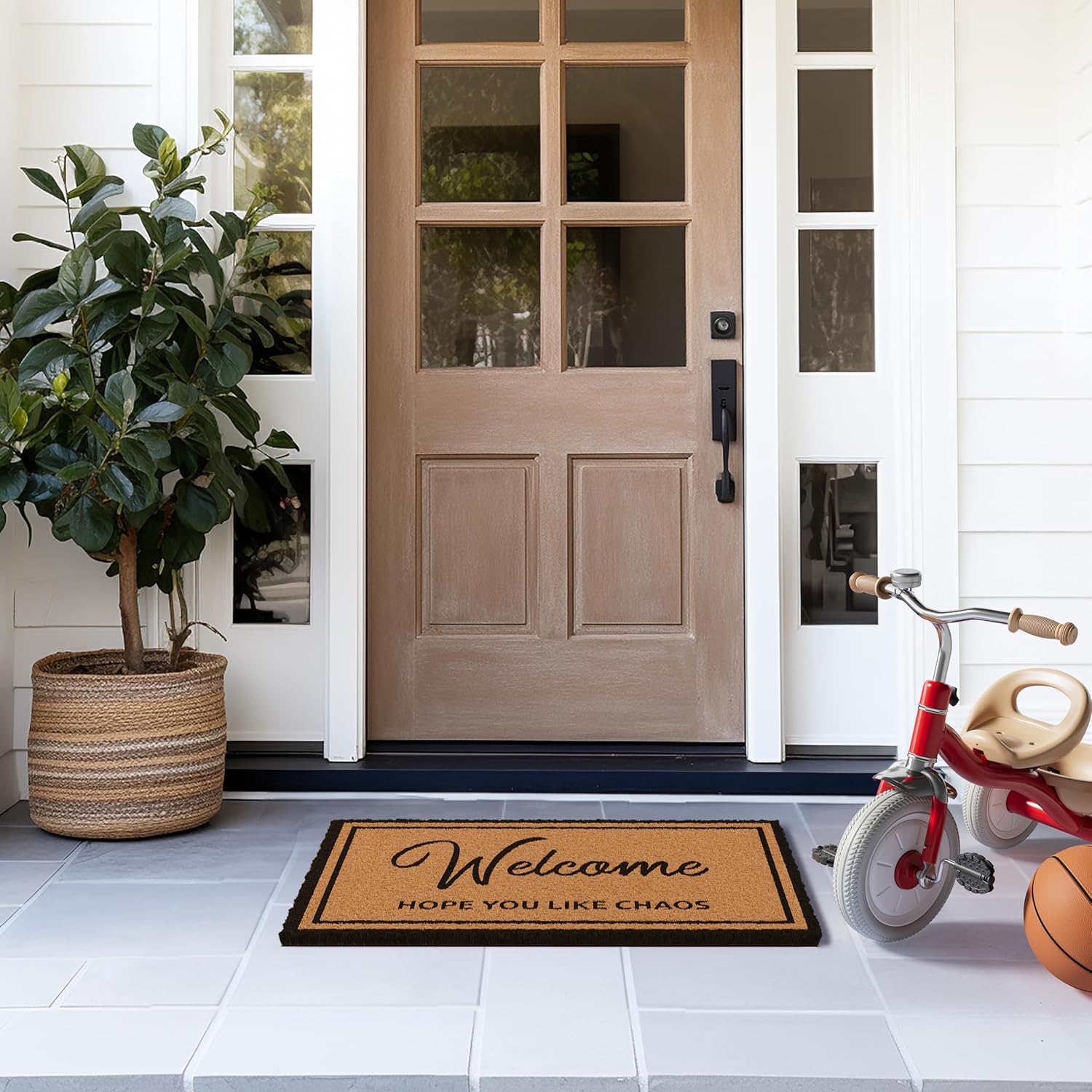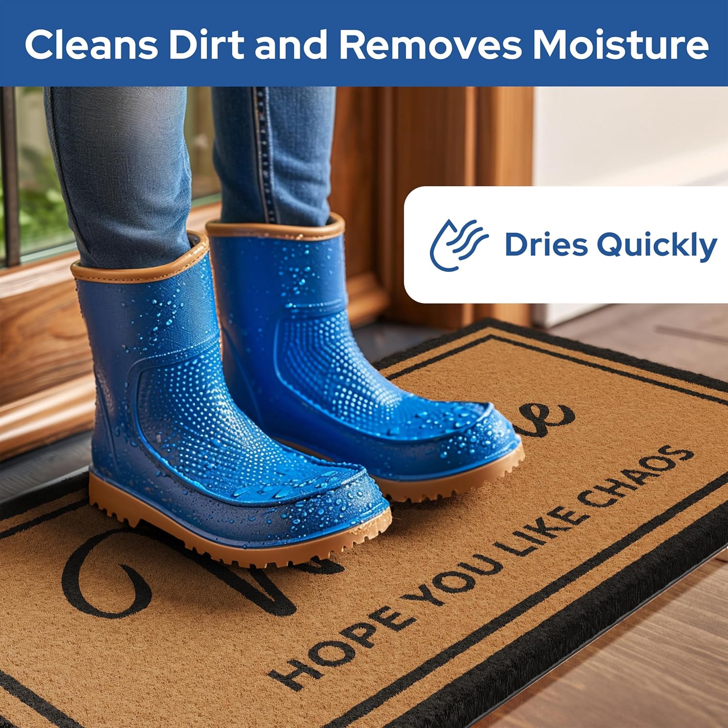 - Say Hello in Style - Welcome guests into your home with a laugh with our eye-catching Hope You Like Chaos Doormat; it’s the perfect indoor or outdoor welcome mat for front door. The funny doormat’s bold design and large lettering make it impossible to miss, adding a touch of humor to any entryway.
