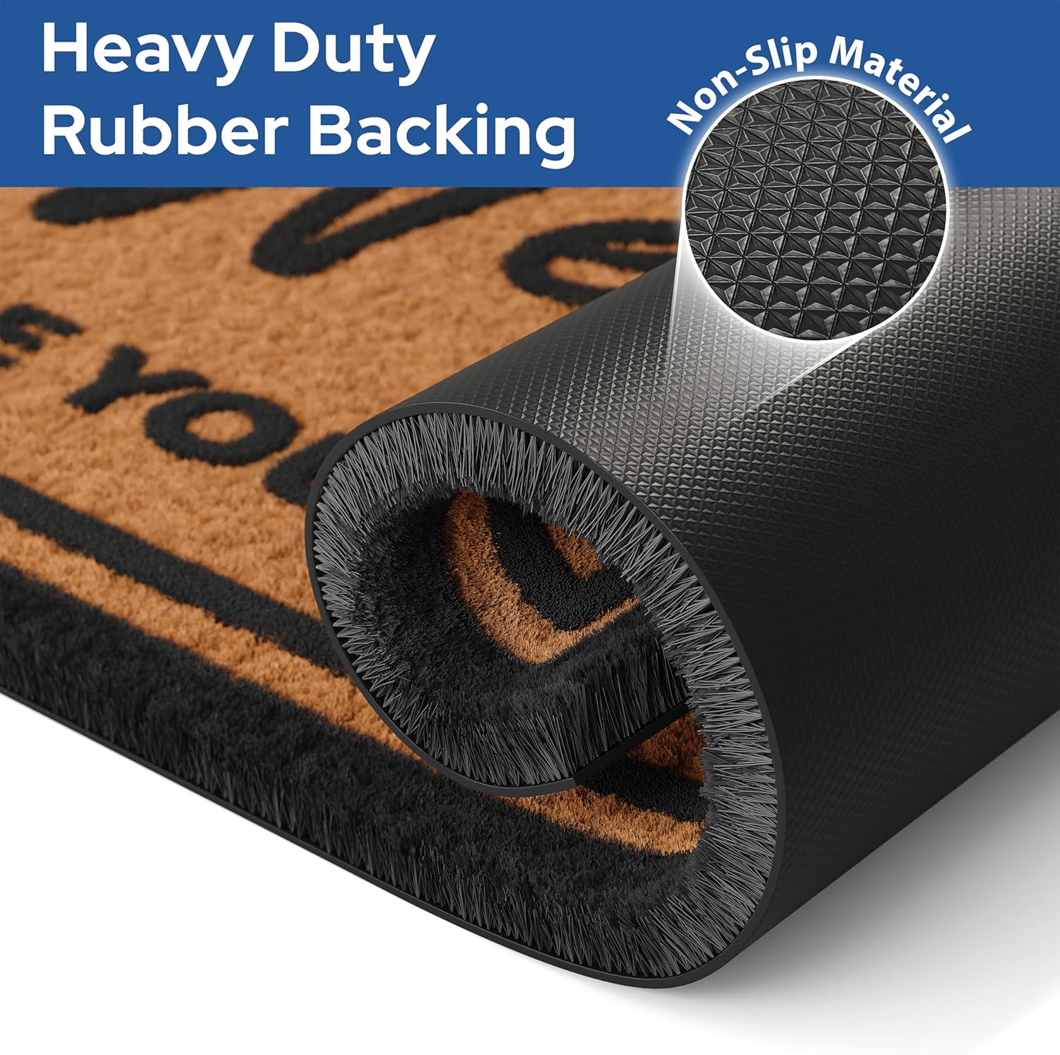 - Slip-Proof - Our non-slip rubber backing keeps the welcome door mat securely in place, preventing slips and falls. Whether you have a concrete, stone, or wooden porch, our exterior door mat outside entrance rug will stay put and keep your visitors safe.