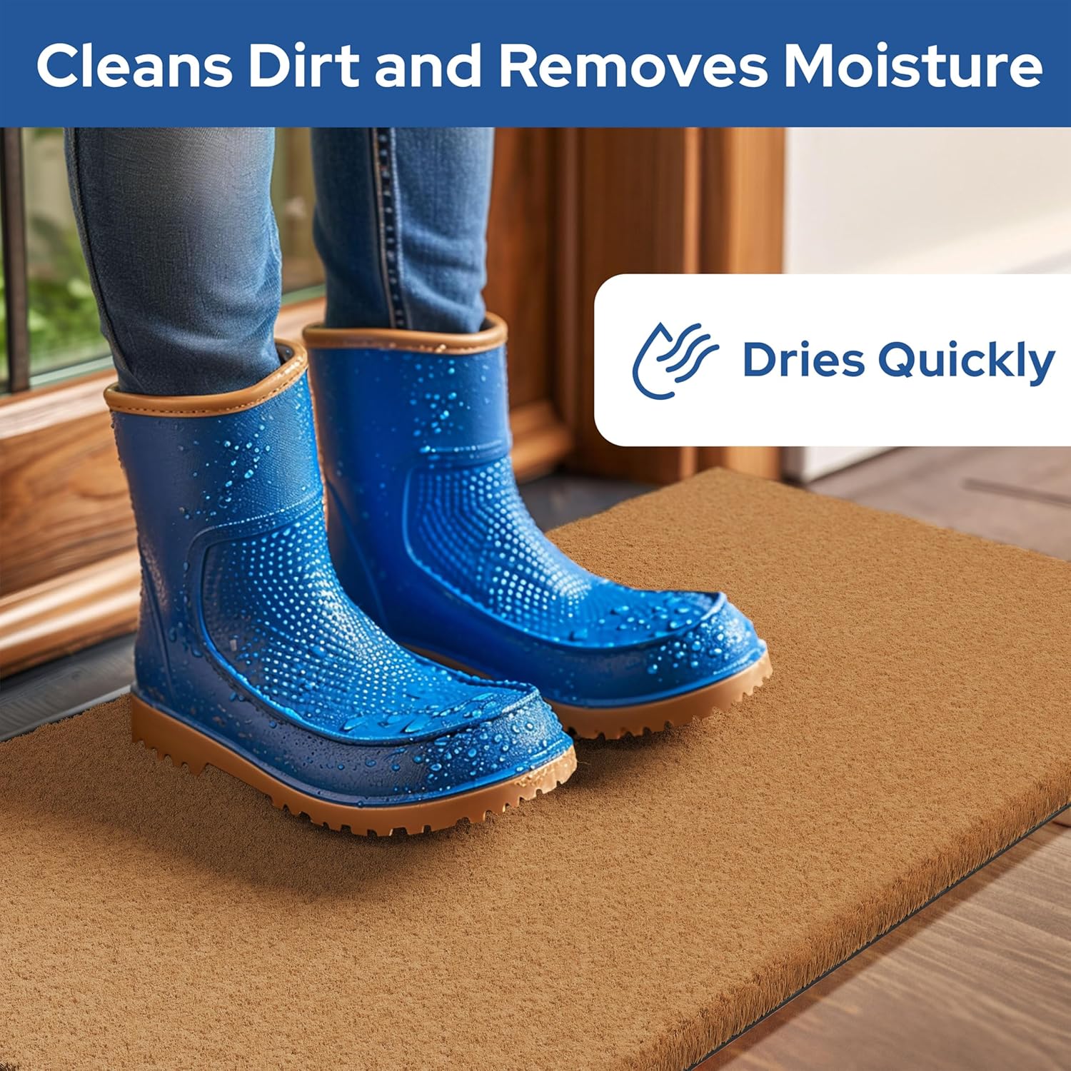 - Made of Durable Coir - Our doormats are made of 100% coconut coir fibers, one of the strongest and most durable natural fibers on earth. The high-quality coir used in its construction ensures that it will maintain its shape and appearance, even with heavy use. Please note that light shedding may occur, as is common with all natural coir mats. Additionally, avoid completely soaking mat with water as this could lead to natural coir runoff.