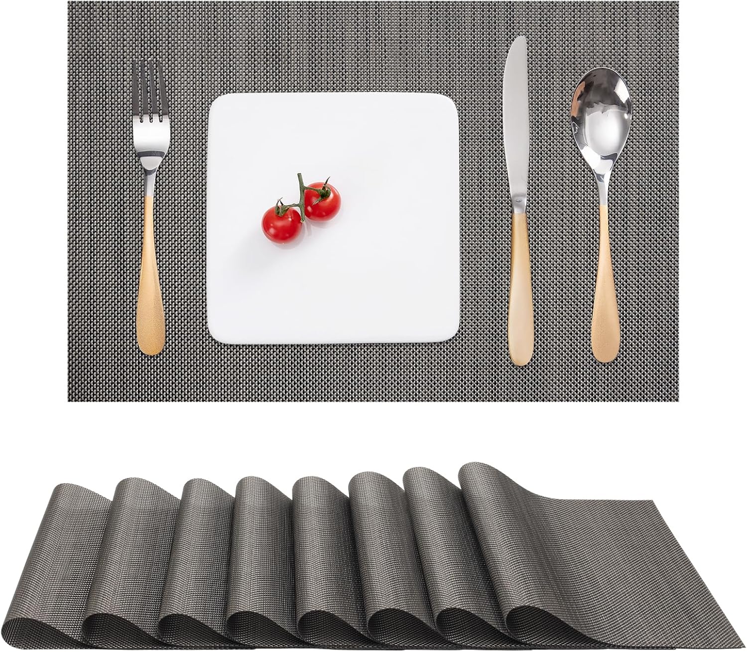 Myir JUN Placemats Set of 8, Vinyl Woven Placemats Place Mats Indoor Set of 8 Washable Table Mats Non-Slip Place mats for Dining Table (Dark Brown, Set of 8)