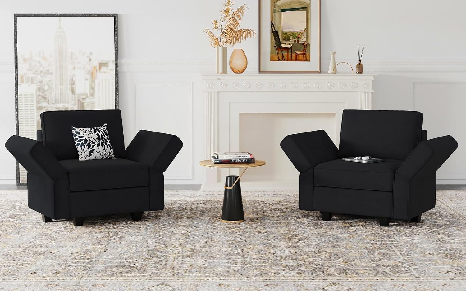 - Invisible Storage Spaces: The seat of arm chair has a hidden storage and the lid automatically stays open in the position so that you can easily and conveniently pick out and put back the things you are storing, which will save spaces and complement the existing interior design. Storage dimensions: 22.40''(L)*22.40''(W)"*5.70"(H)