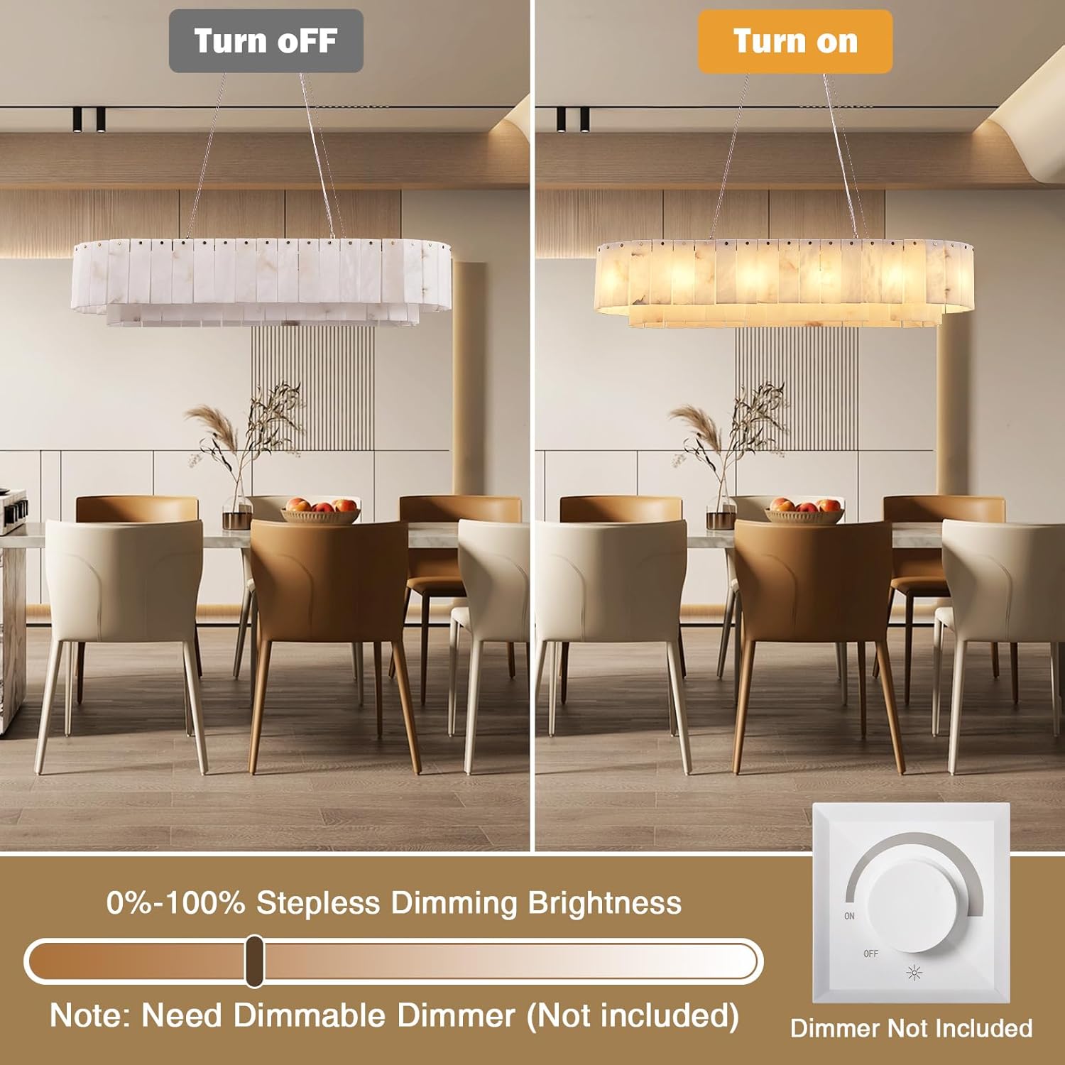 - 【Natural Alabaster & Unique Texture】Dining room chandelier is made of real natural stone. Each piece is carefully selected and hand-polished, which enhances the natural beauty of the stone while presenting a sophisticated and charming appearance. It is known for its unique patterns, which are marks formed by nature. Due to the differences in natural materials and handcraftsmanship, no two pieces are exactly the same.