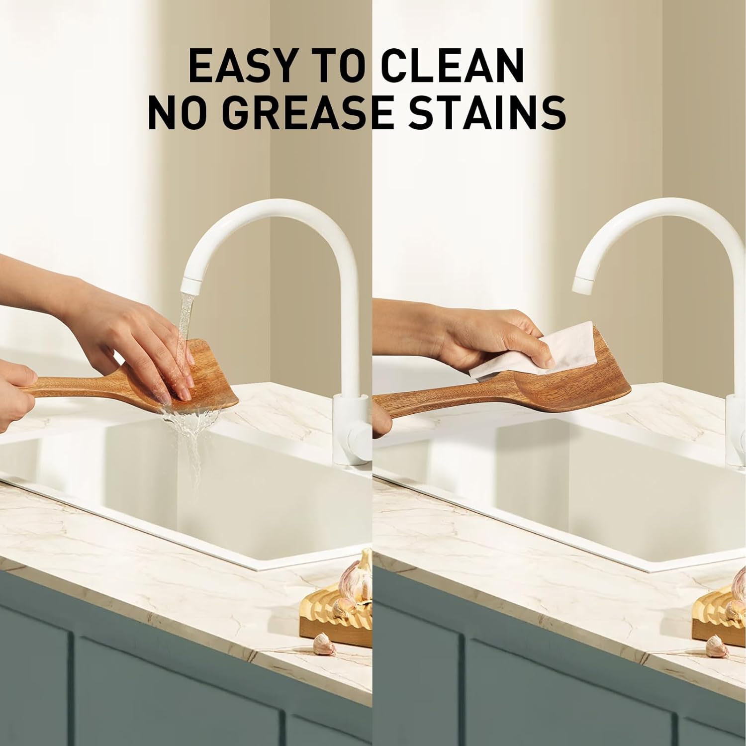 - Easy to Clean and Store: The surfaces of all our utensils are smooth without burrs so they wonβt damage your cookware. Cleaning is easy with warm water or soapy water. Each tool has holes in the handle allowing it to be hung up on any standard-sized cutlery rack when not being used - providing convenient storage options for busy kitchens that are also stylish!