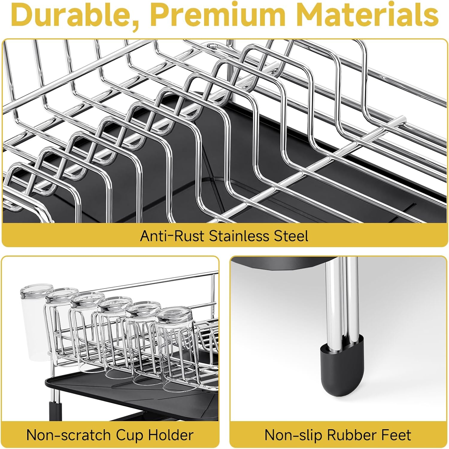 - 【Stable Kitchen Shelf】6 rubber feet prevent the dish drying rack from sliding on the table top, avoid scratching your sink or table top, and also protect your tableware