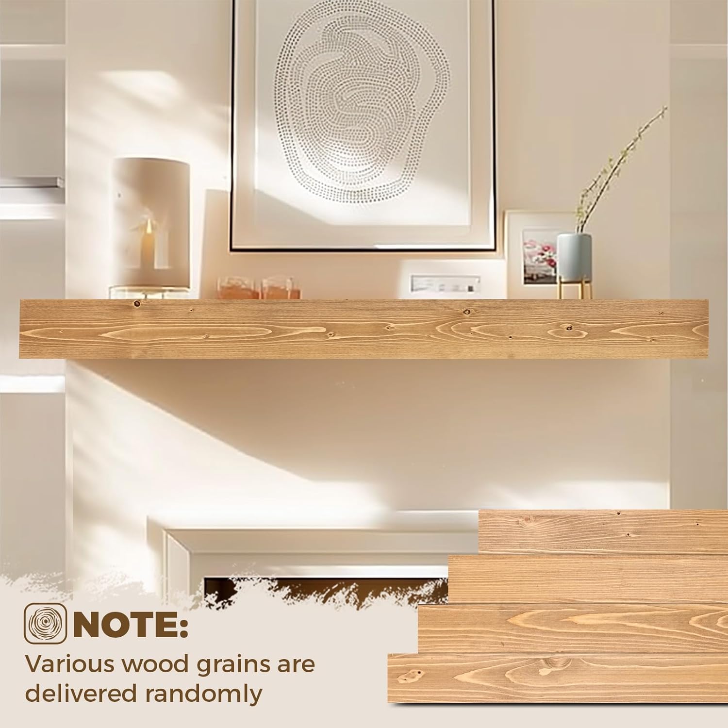 72x8x3 Fireplace Mantel - Handcrafted Hollow Rustic Solid Wood Wall Mounted Floating Shelf with Invisible Heavy Duty Wood Bracket (Natural Wood)