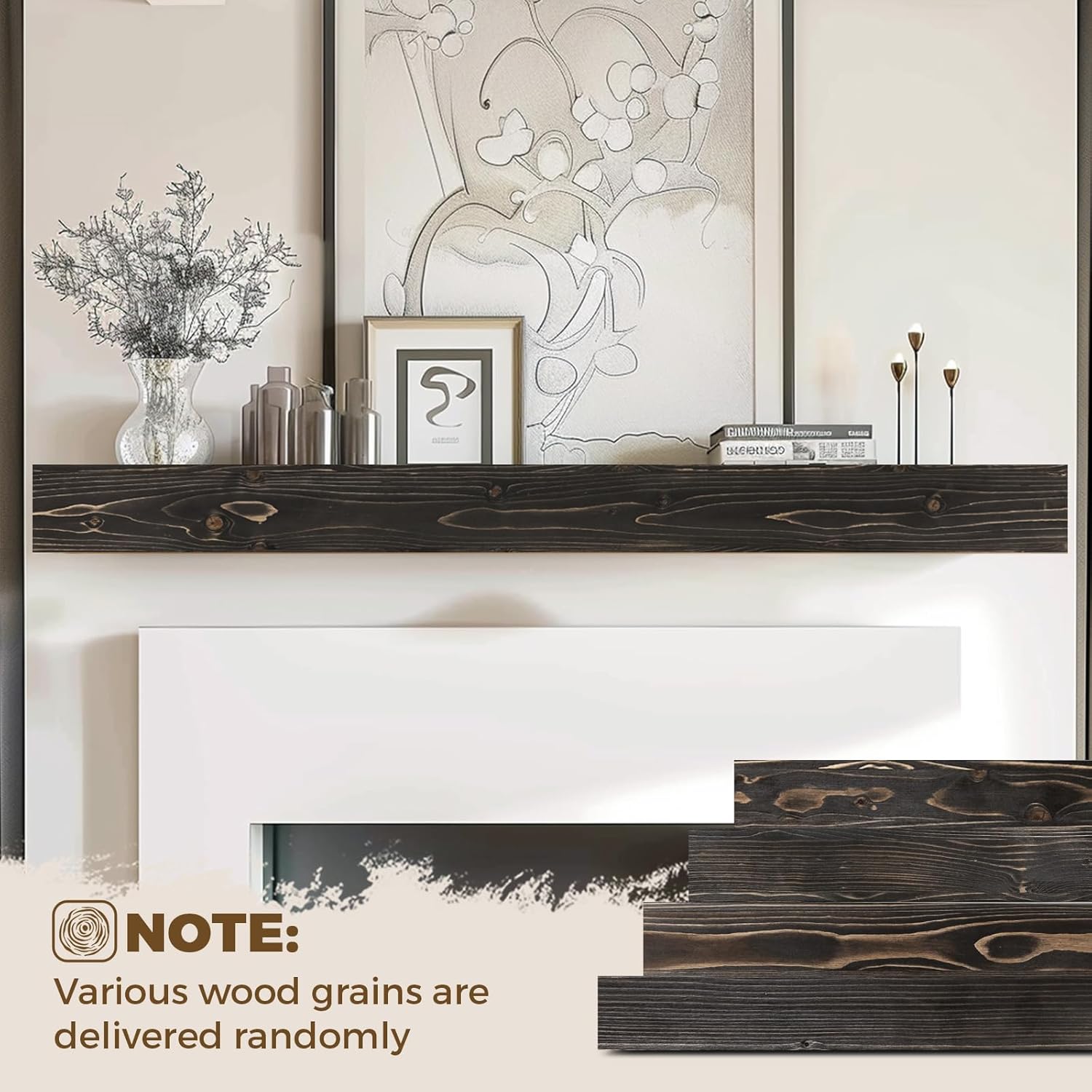 - Wall-Mounted Design: The fireplace mantels feature an elegant floating design, offering a clean and tidy appearance, making them the perfect choice for displaying decorations or storing daily items. These mantels are not only furniture, they are a lasting investment in the beauty of natural wood, carefully processed to suit your home even better