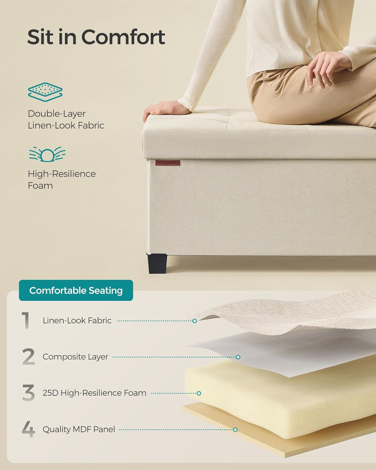 - ăELEGANT DESIGN, ENDURING COMFORTăThis ottoman boasts a chic linen-look surface with an elegant tufting design, adding a stylish touch to your space. The double-layer fabric and high-resilience foam ensure lasting comfort for relaxation