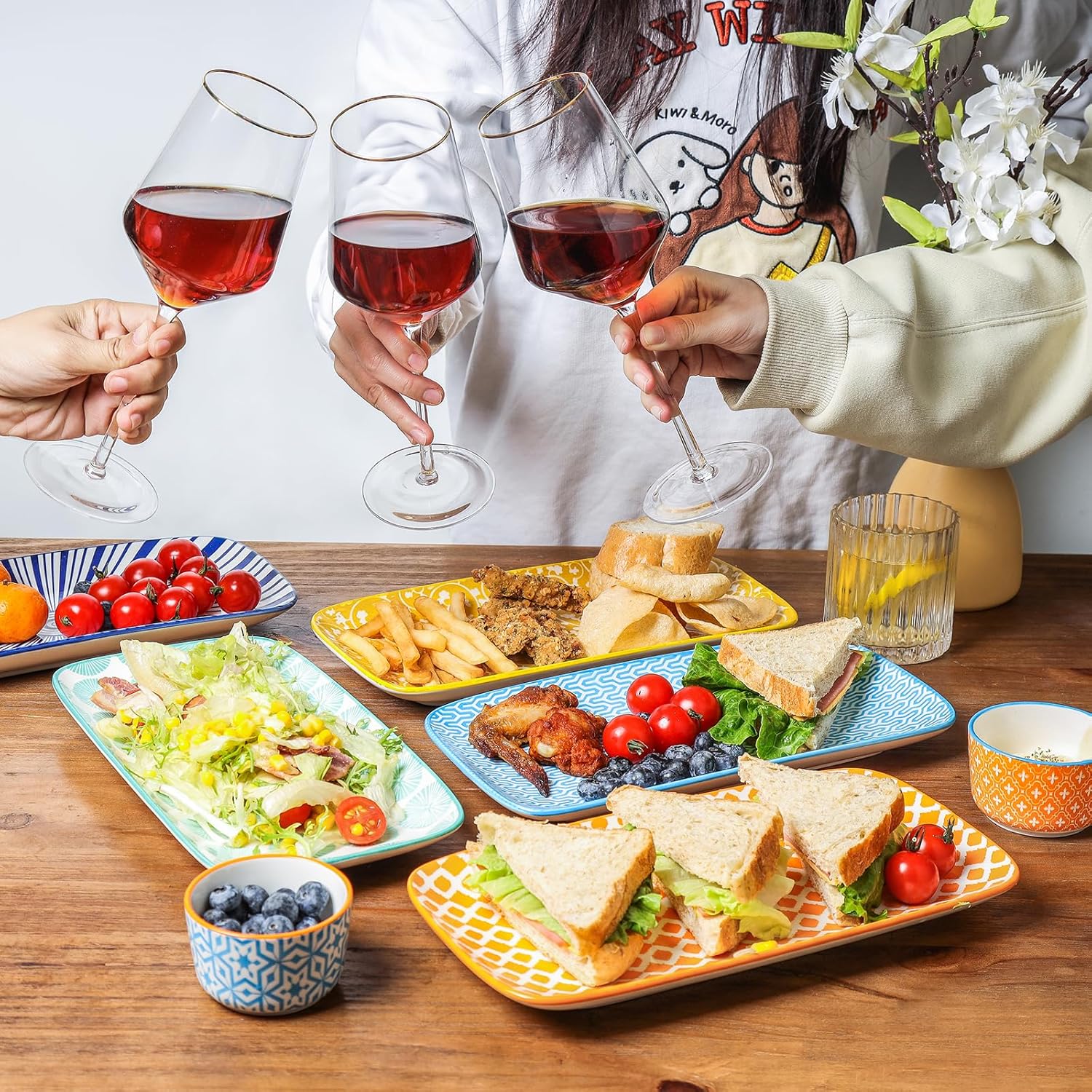 - GORGEOUS PRESENT CHOICE - The pop color and unique design make the serving trays eye-catching tableware at your table. You will receive a lot of compliments from your guests when you own it to entertain. This large salad plate set comes with protective packaging which is the best present for your family or friends.