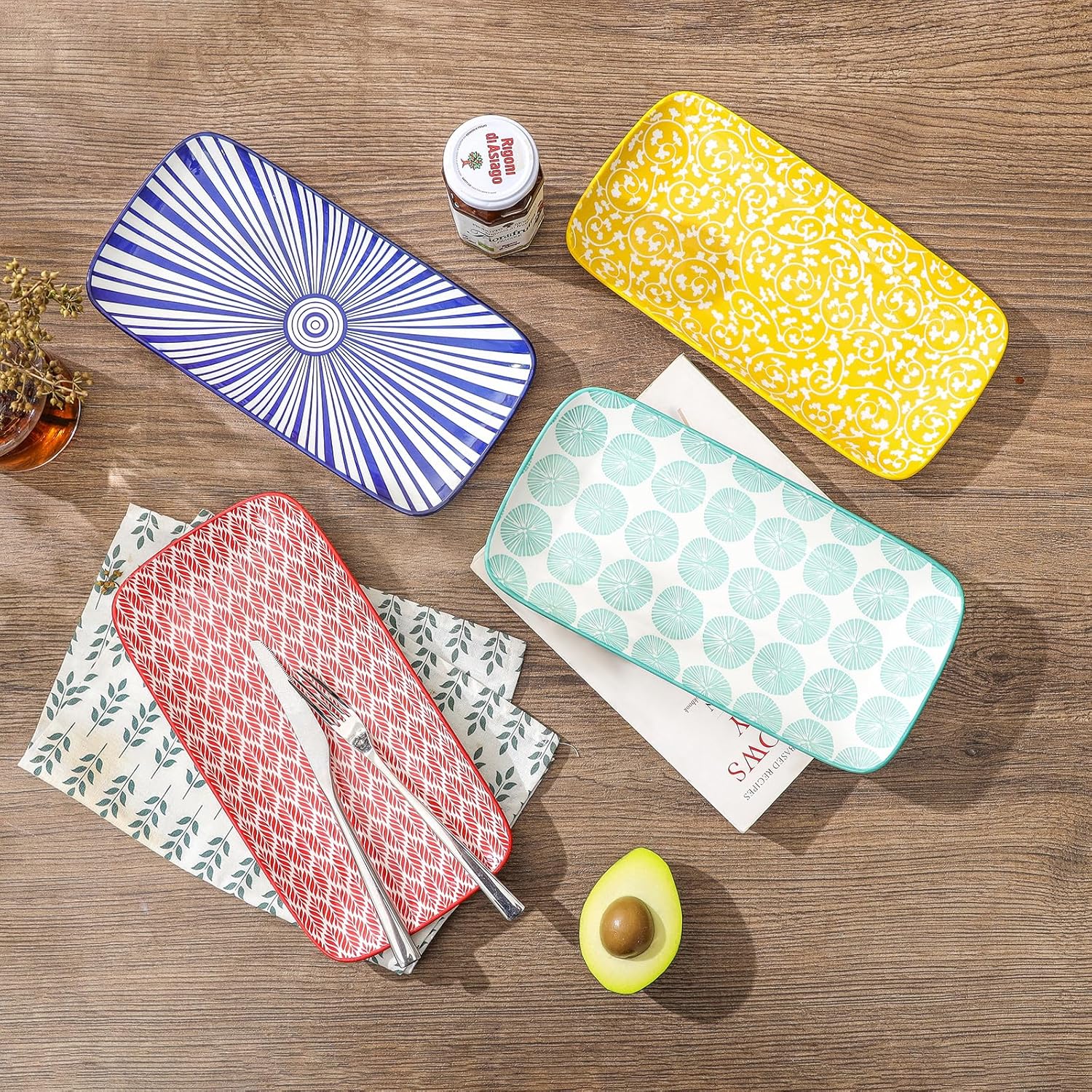 Selamica Ceramic Serving Platters, 14 Inch Serving Trays for Party Entertaining, Large Rectangular Serving Plates for Appetizer, Charcuterie, Dessert, Fruit, Set of 4, Assorted Colors
