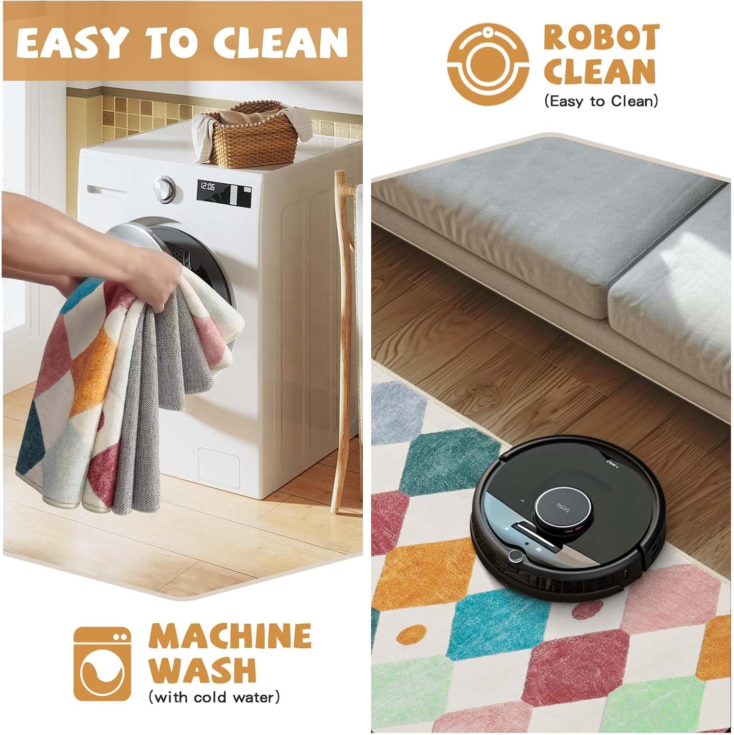 - Machine Washable: Designed with convenience in mind, our bedroom rug is machine washable, allowing for easy cleaning and maintenance. Also suitable for daily cleaning with a vacuum cleaner, broom, or mop. Easy to keep a new looking