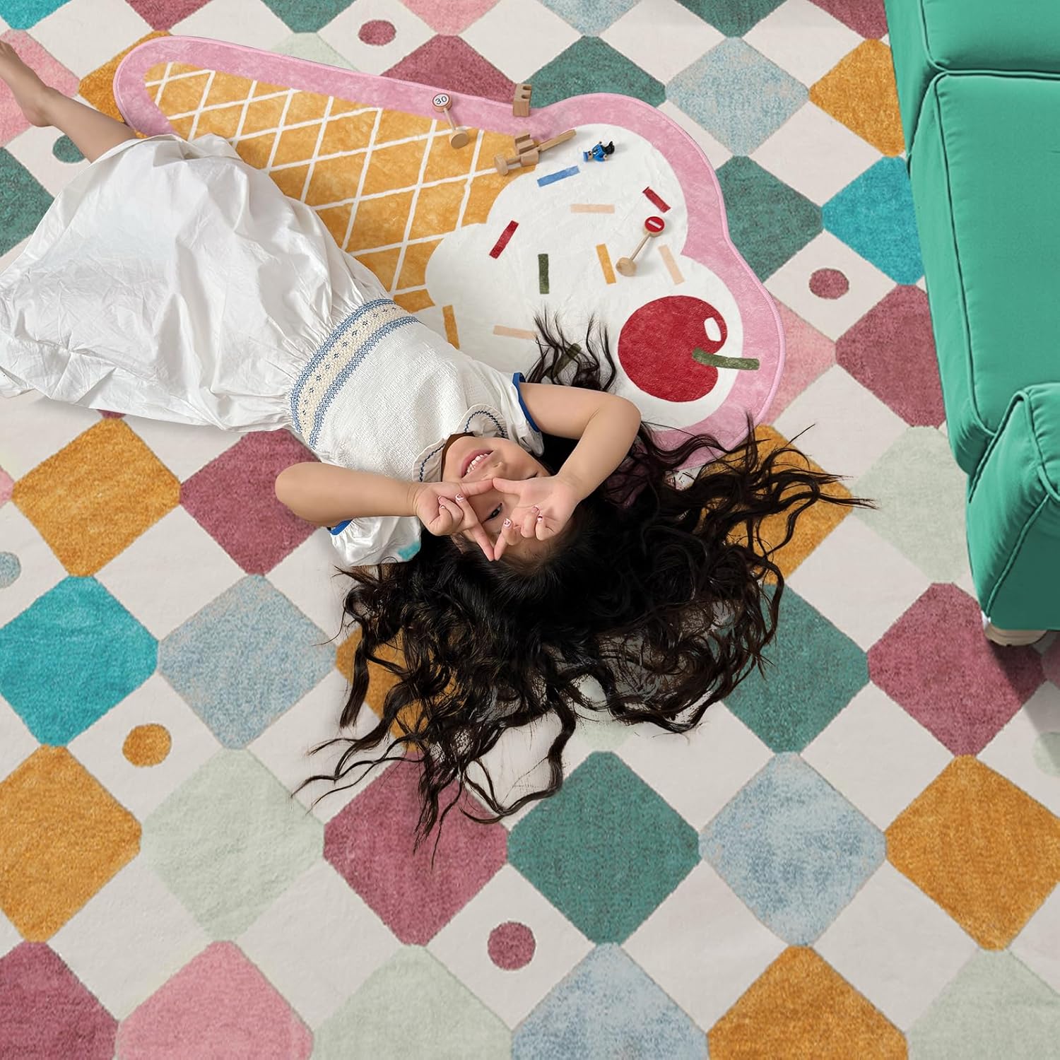 - Warm Vintage Colorful Design: Adorned with delightful diamond lattice splicing pattern against a soft cream bottom, this rug adds a playful charm to children's rooms and infuses vitality into adult spaces