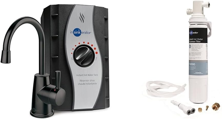 InSinkErator Stainless Steel Tank, H250MBLK-SS HOT250 System, Single-Handle Matte Black Faucet & F-2000S Premium Under Sink Water Filtration System for Instant Hot