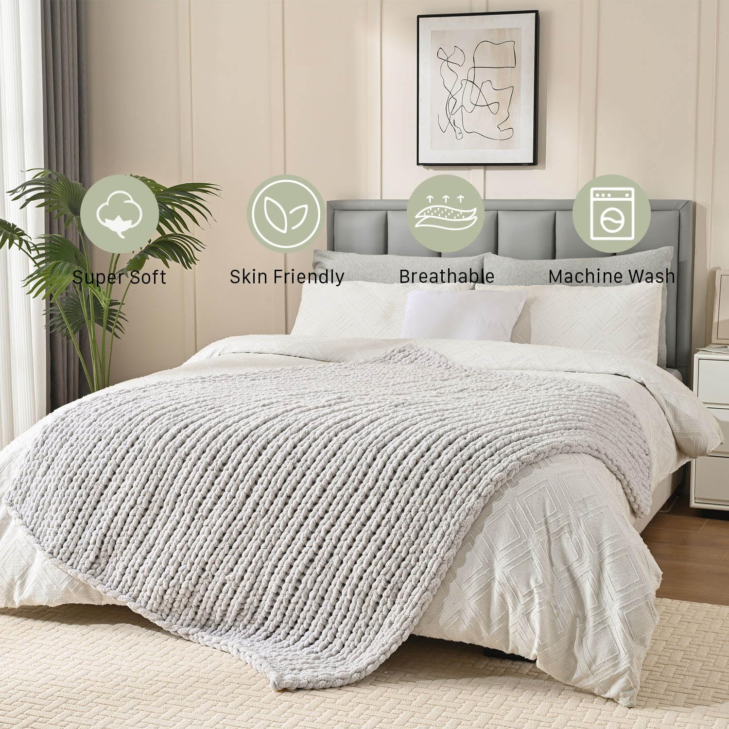 Esterra 100% Hand Knitted Chenille Throw Blanket, Cozy Soft Thick Cable Knit Throw, 40x50 Inches, Light Gray