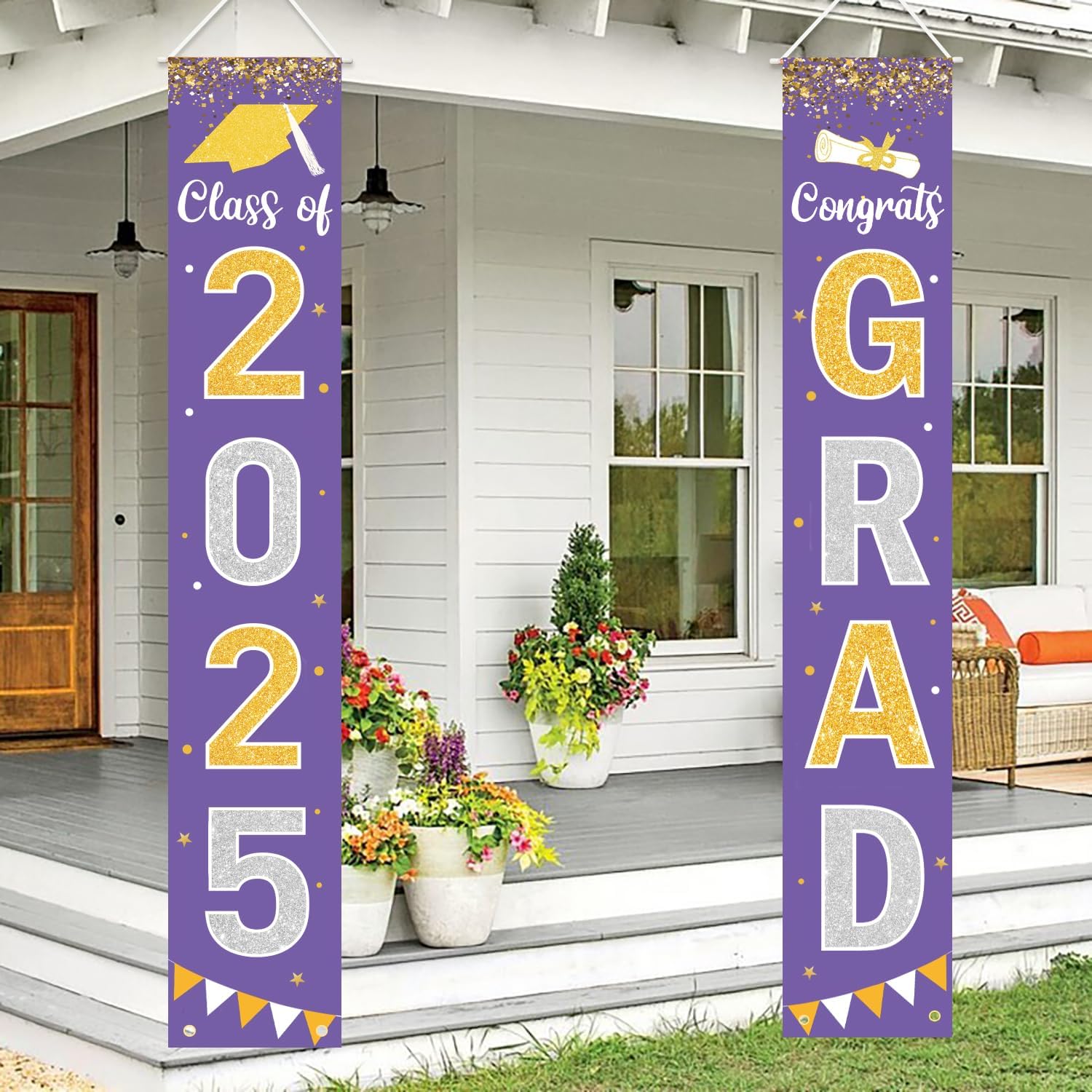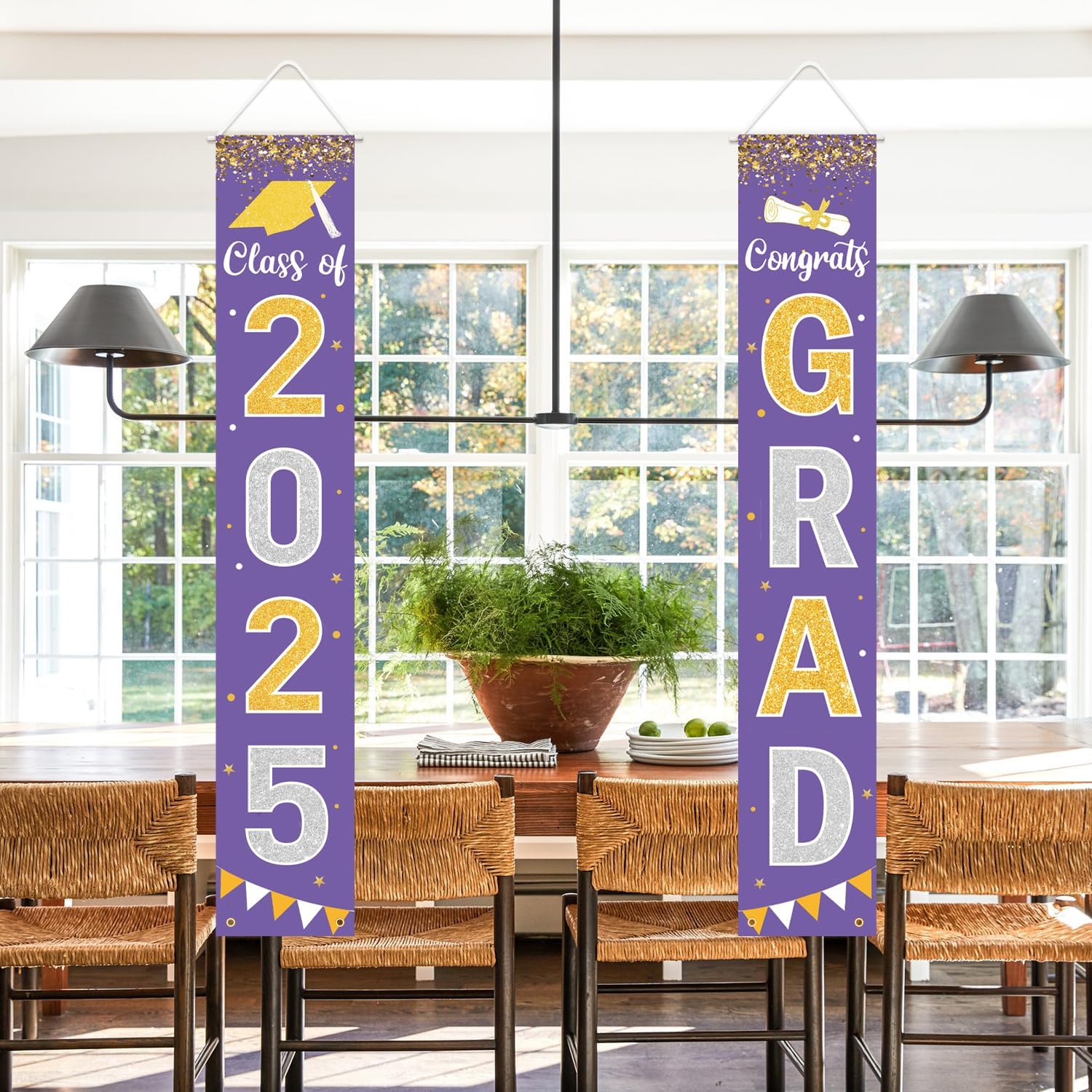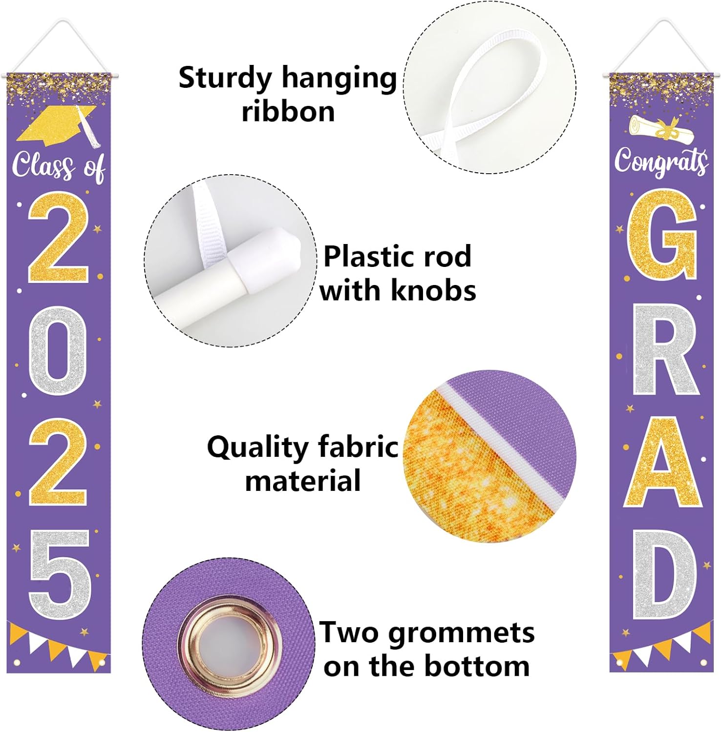 Graduation Decorations 2025 GRAD Banner Purple Porch Door Sign Welcome Banner For Indoor Outdoor Wall Graduation Decorations Class of 2025