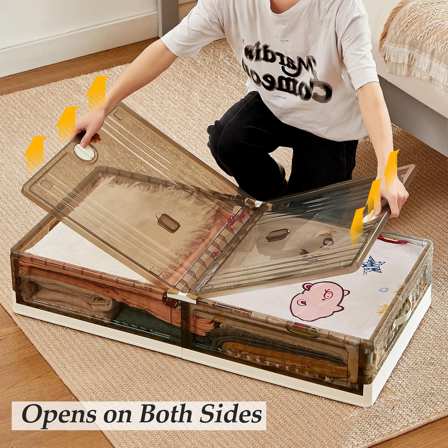 - 【Foldable Storage Boxes】Our storage bins with lids under bed are easy to assemble – simply unfold the four sides, connect them, and add the lid and wheels. When not in use, you can fold them and place under bed storage containers plastic in a corner or under the sofa, saving a significant amount of space.