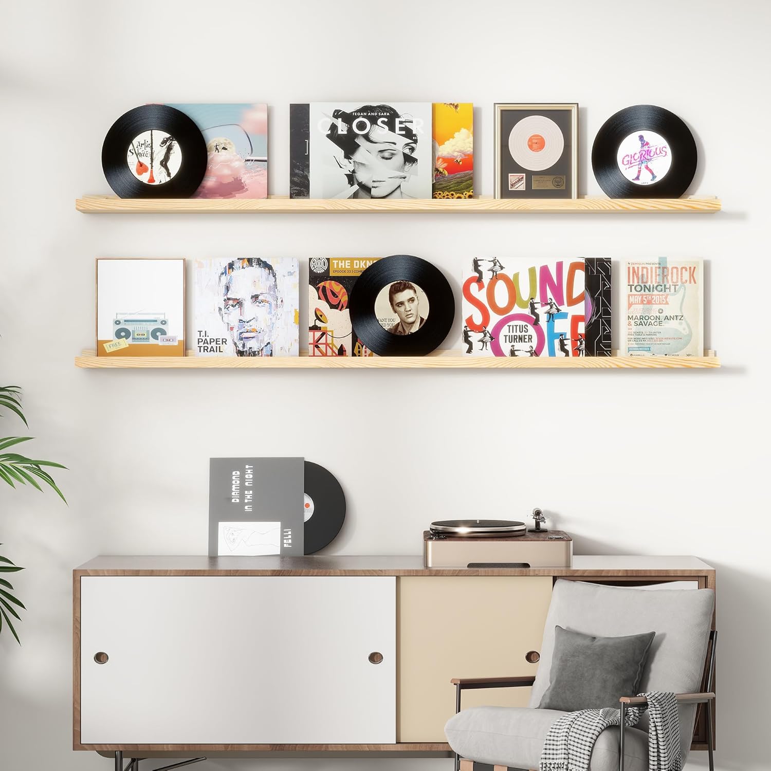 Picture Ledge Shelf, Floating Shelves Set of 2, Solid Pine Wood 72'' Long Large Nursery Book Shelves for Toys Storage, Kids Bookshelf for Living Room Bedroom Decor Books Photo Frames, Natural