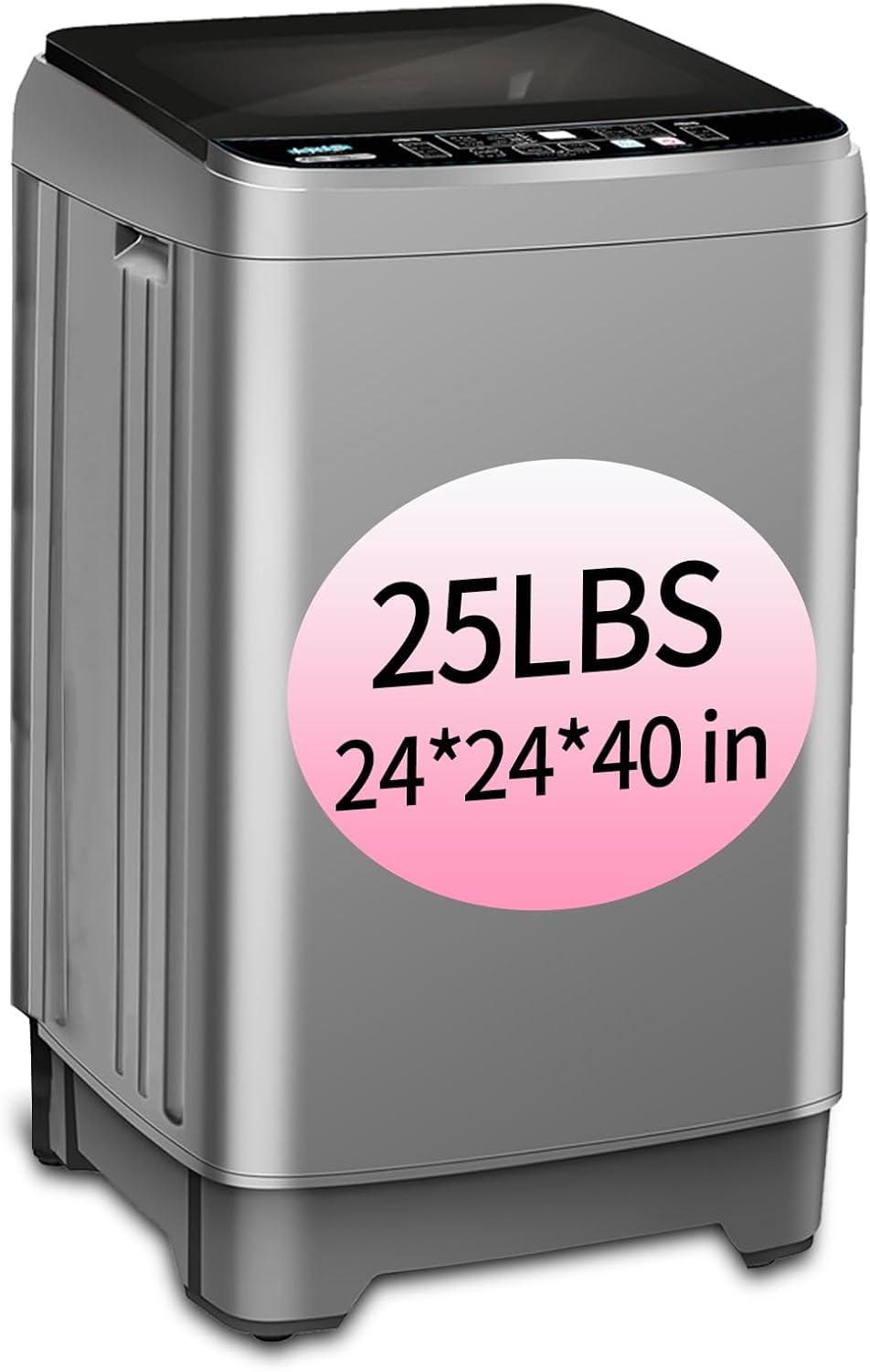 - 【Large Capacity】The inner tub of this portable washer could load 25 lbs of clothes at one time, which is suitable for family of 5-6 members. The reference weight for all types of clothes would also be highlighted in the description and pictures.
