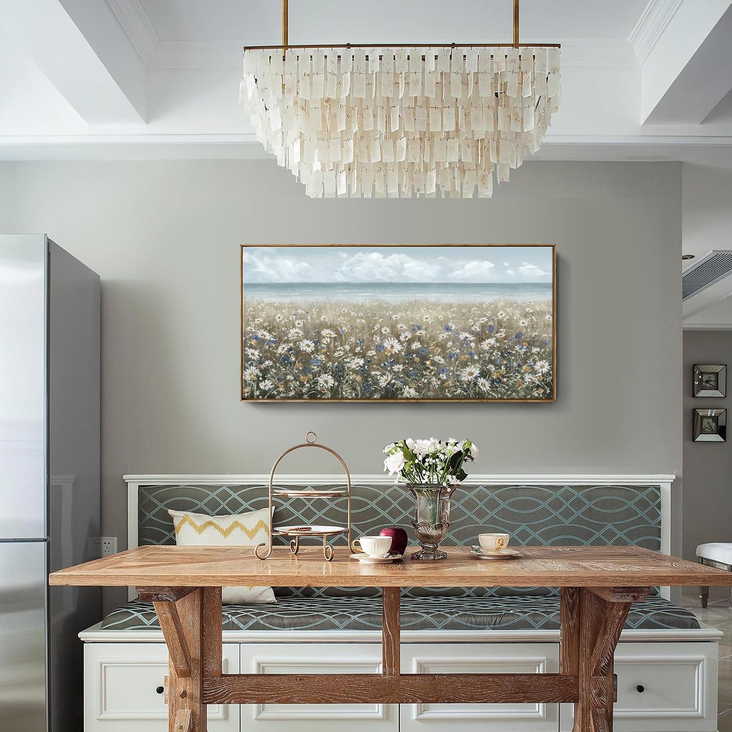 amatop Large Wall Art for Living Room Framed Boho Beach Coastal Floral Ocean Wall Picture Farmhouse Daisy Flower Sea Canvas Print Nautical Neutral Vintage Warm Artwork Home Bedroom Office Decor 48x24