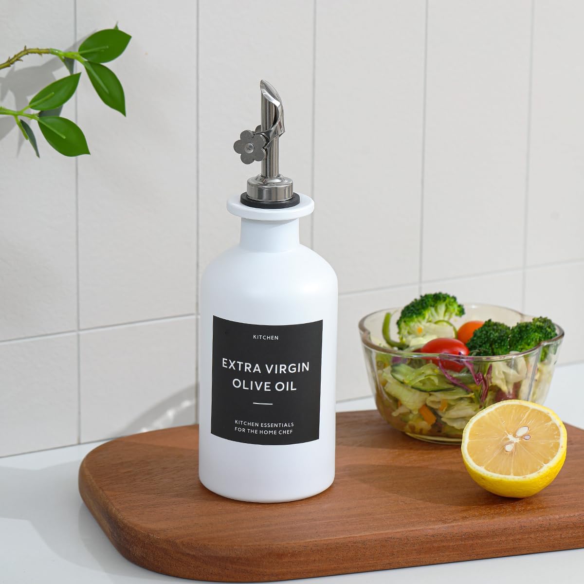 - KITCHEN ESSENTIAL - Worthy of sitting on your kitchen counter, The olive oil bottle dispenser for kitchen with label which can help you identify them easily, both decorative and practical, this oil dispenser bottles not only kitchen oil dispenser, but also black and white kitchen décor.