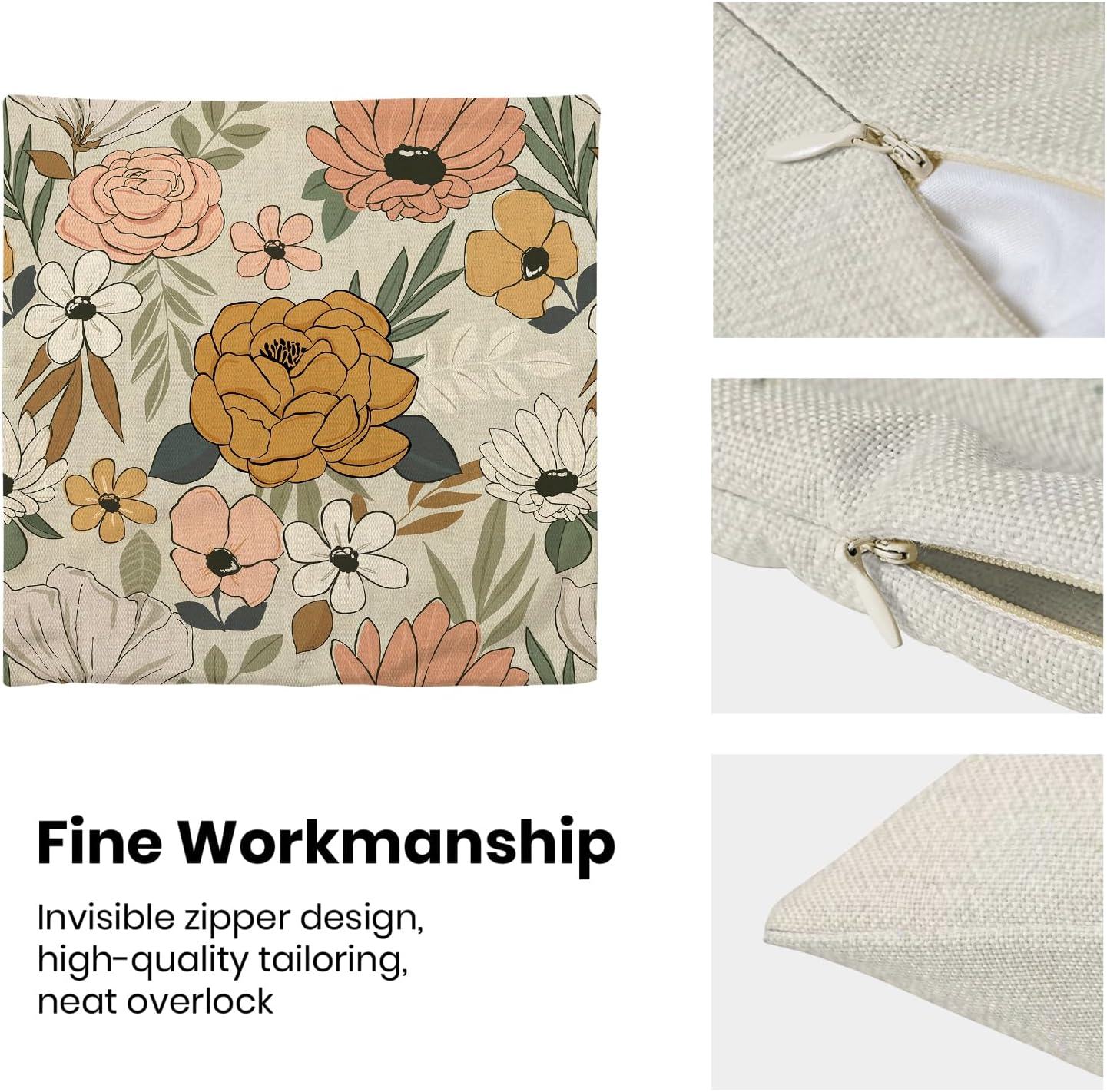 - 【Spring Pillow Covers】 Our floral throw pillow covers 20x20 inch are made of excellent breathable polyester linen fabric. The cream decorative pillow covers is durable, soft and skin-friendly. The plant outdoor pillow covers adopt exquisite edging technology and four sides of our floral pillow covers are sewn firmly, which is not easy to open the line.
