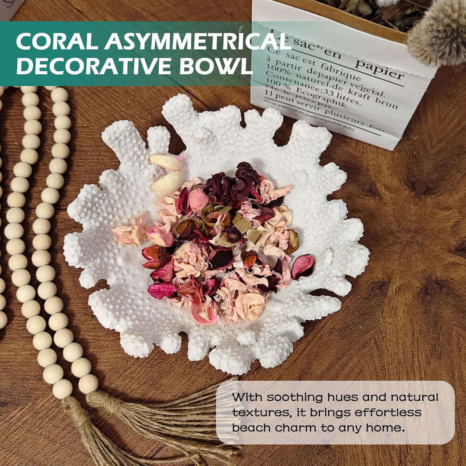 - [Beach coral decorations for home] This white coral decorative bowl is inspired by the serenity and allure of coastal living. With soothing hues and natural textures, it brings effortless beach charm to any home. Experience the feeling of being on a perpetual vacation at the seaside, all without exploiting our precious oceans. This coral decorative bowl perfect for modern coastal bowl decor and coastal decor for home