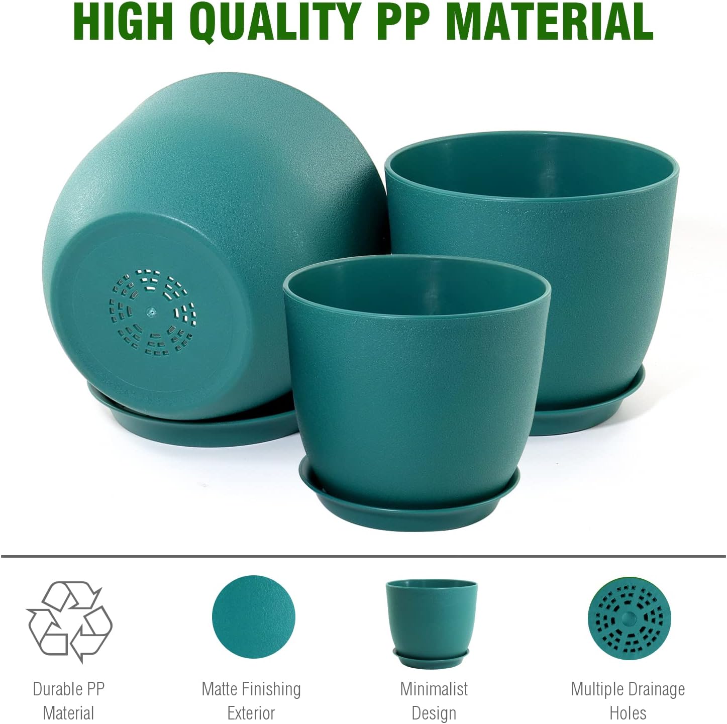 Large Flower Pots 12/10/9 inch, Set of 3 Modern Decorative Plastic Planters with Drainage Holes and Saucers for House Plants, Plant Pots for Indoor Outdoor Plants, Blue Green